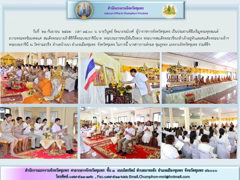 สรจ.ชุมพร ร่วมพิธีเจริญพระพุทธมนต์ถวายพระพรชัยมงคลแด่ สมเด็จพระนางเจ้าสิริกิติ์พระบรมราชินีนาถ พระบรมราชชนนีพันปีหลวง พระบาทสมเด็จพระวชิรเกล้าเจ้าอยู่หัวและสมเด็จพระนางเจ้าฯพระบรมราชินี