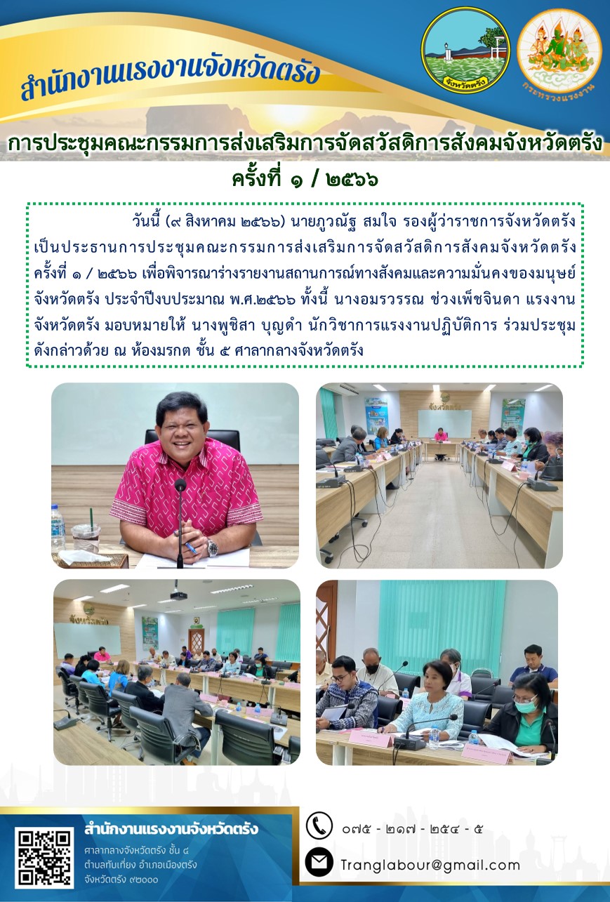 สรจ.ตรัง ร่วมการประชุมคณะกรรมการส่งเสริมการจัดสวัสดิการสังคมจังหวัดตรัง ครั้งที่ 1 / 2566