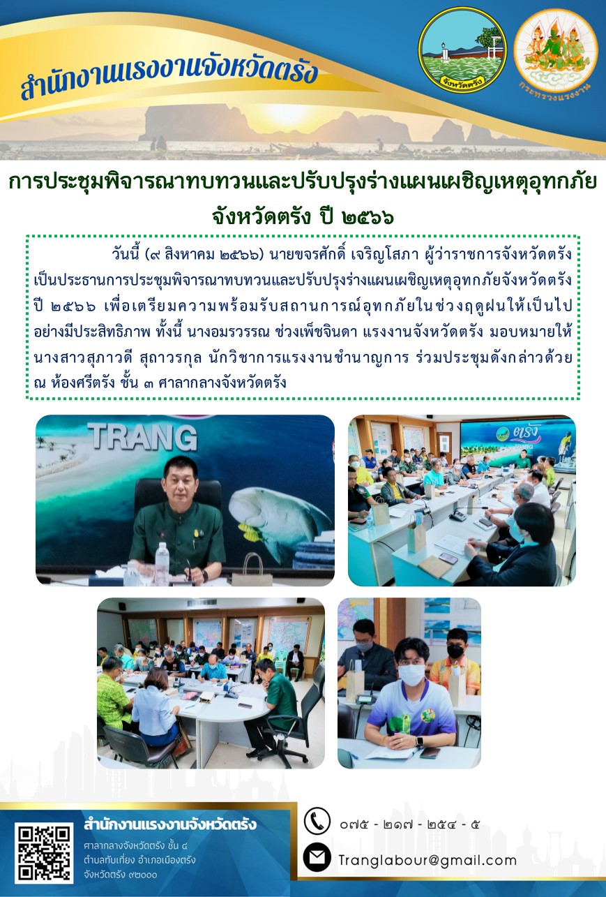 สรจ.ตรัง ร่วมการประชุมพิจารณาทบทวนและปรับปรุงร่างแผนเผชิญเหตุอุทกภัยจังหวัดตรัง ปี 2566
