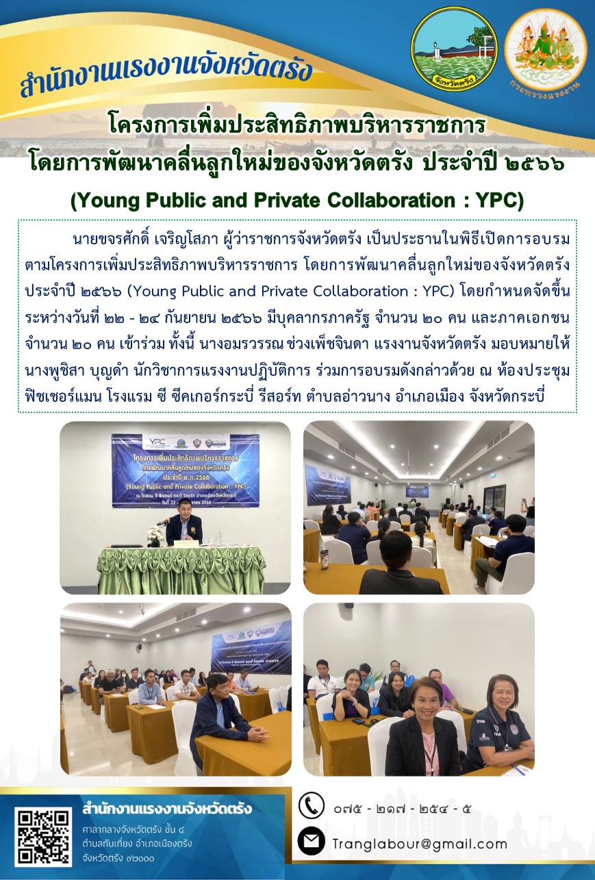 สรจ.ตรัง ร่วมการอบรมตามโครงการเพิ่มประสิทธิภาพบริหารราชการ โดยการพัฒนาคลื่นลูกใหม่ของจังหวัดตรัง ประจำปี 2566 (Young Public and Private Collaboration : YPC)
