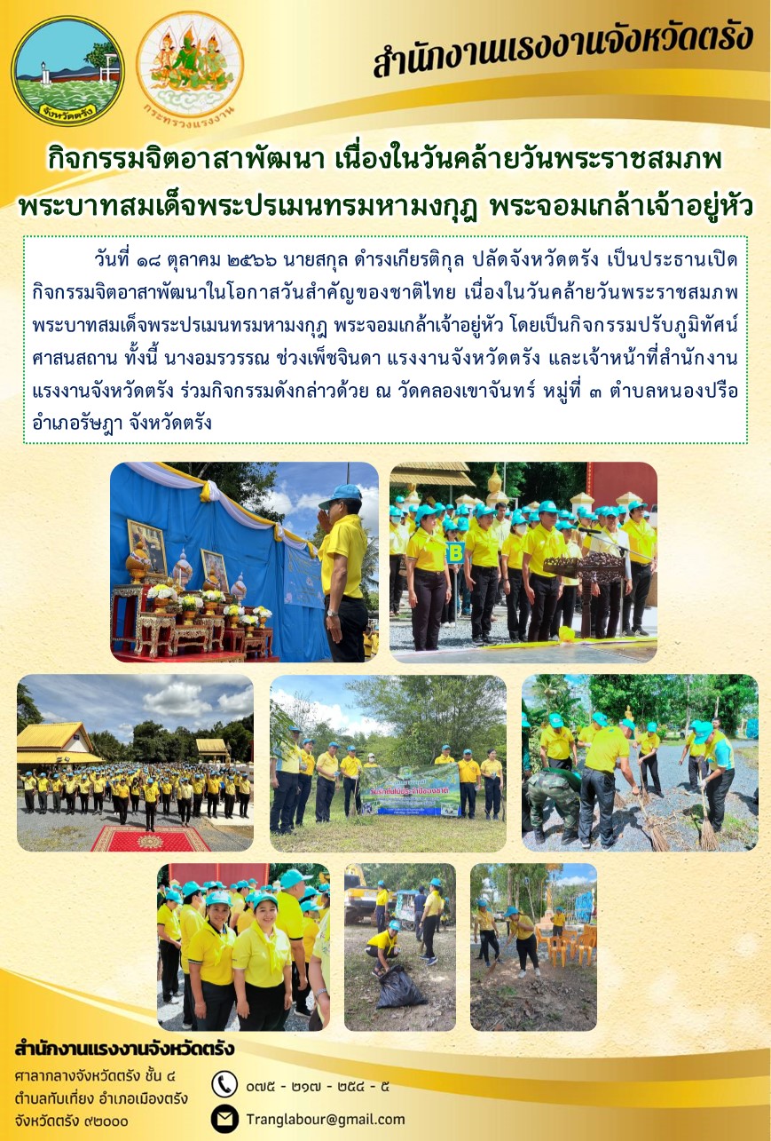 สรจ.ตรัง ร่วมกิจกรรมจิตอาสาพัฒนา เนื่องในวันคล้ายวันพระราชสมภพ พระบาทสมเด็จพระปรเมนทรมหามงกุฎ พระจอมเกล้าเจ้าอยู่หัว