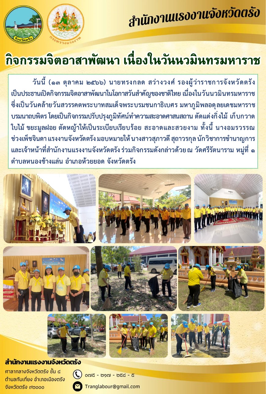 สรจ.ตรัง ร่วมกิจกรรมจิตอาสาพัฒนา เนื่องในวันนวมินทรมหาราช