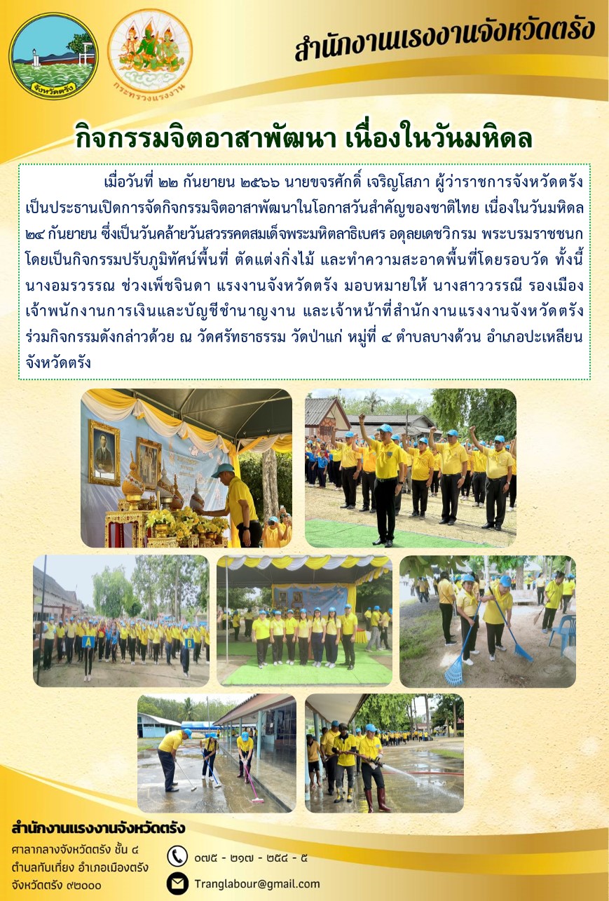 สรจ.ตรัง ร่วมกิจกรรมจิตอาสาพัฒนา เนื่องในวันมหิดล