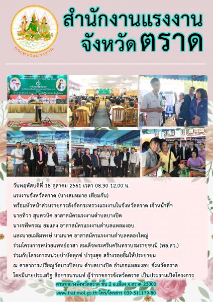 สรจ.ตราด ร่วมโครงการหน่วยแพทย์อาสา สมเด็จพระศรีนครินทราบรมราชชนนี (พอ.สว.) ร่วมกับโครงการหน่วยบำบัดทุกข์ บำรุงสุข สร้างรอยยิ้มให้ประชาชน ณ ศาลาการเปรียญวัดบางปิดบน ตำบลบางปิด อำเภอแหลมงอบ จังหวัดตราด