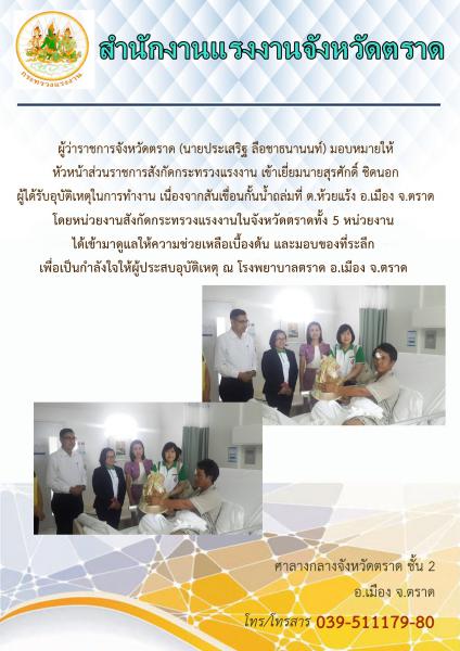 สรจ.ตราด เข้าเยี่ยมผู้ประสบอุบัติเหตุจากการทำงาน โรงพยาบาลตราด