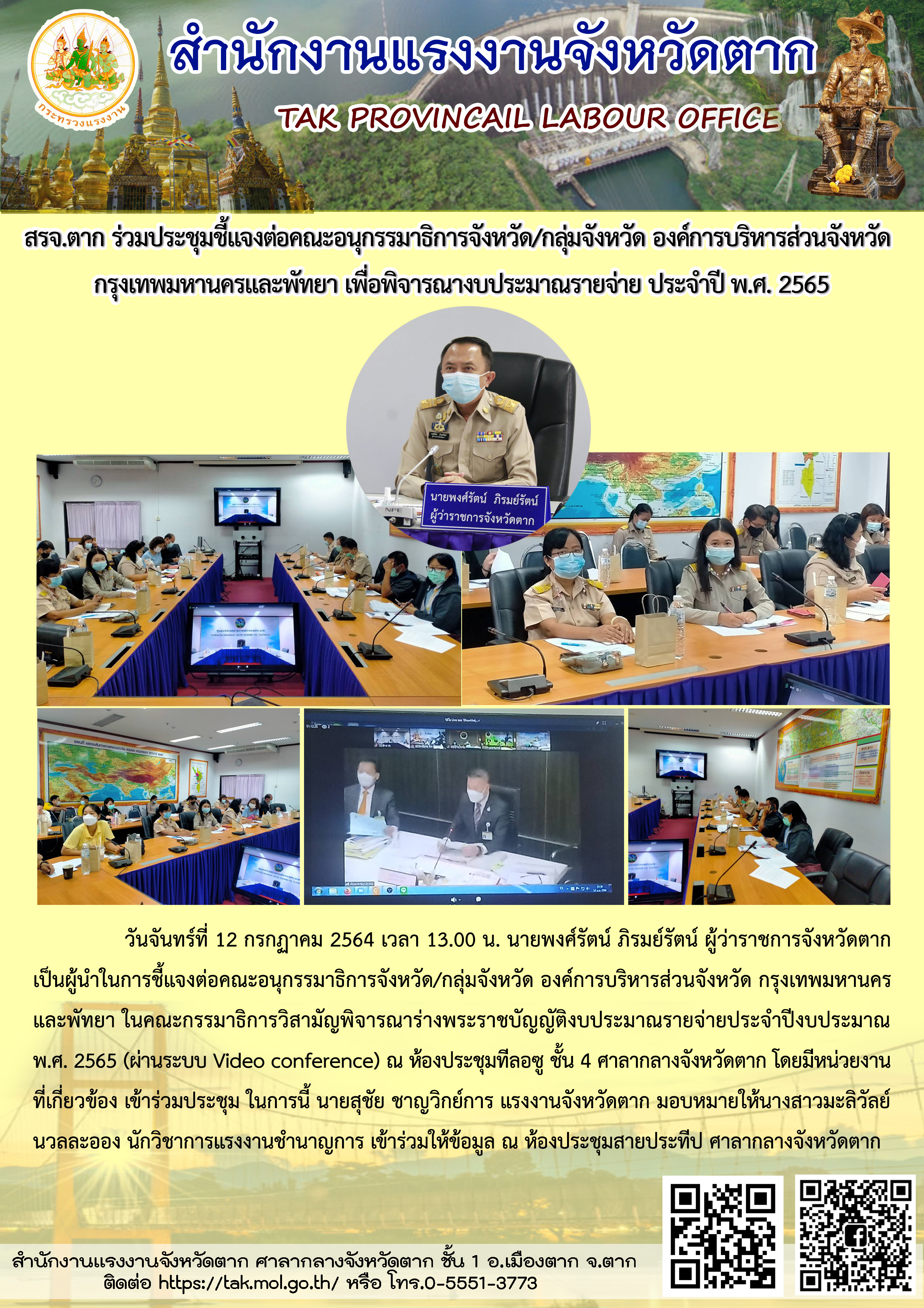 สรจ.ตาก ร่วมประชุมชี้แจงต่อคณะอนุกรรมาธิการจังหวัด/กลุ่มจังหวัด องค์การบริหารส่วนจังหวัด กรุงเทพมหานครและพัทยา เพื่อพิจารณางบประมาณรายจ่ายประจำปี พ.ศ. 2565
