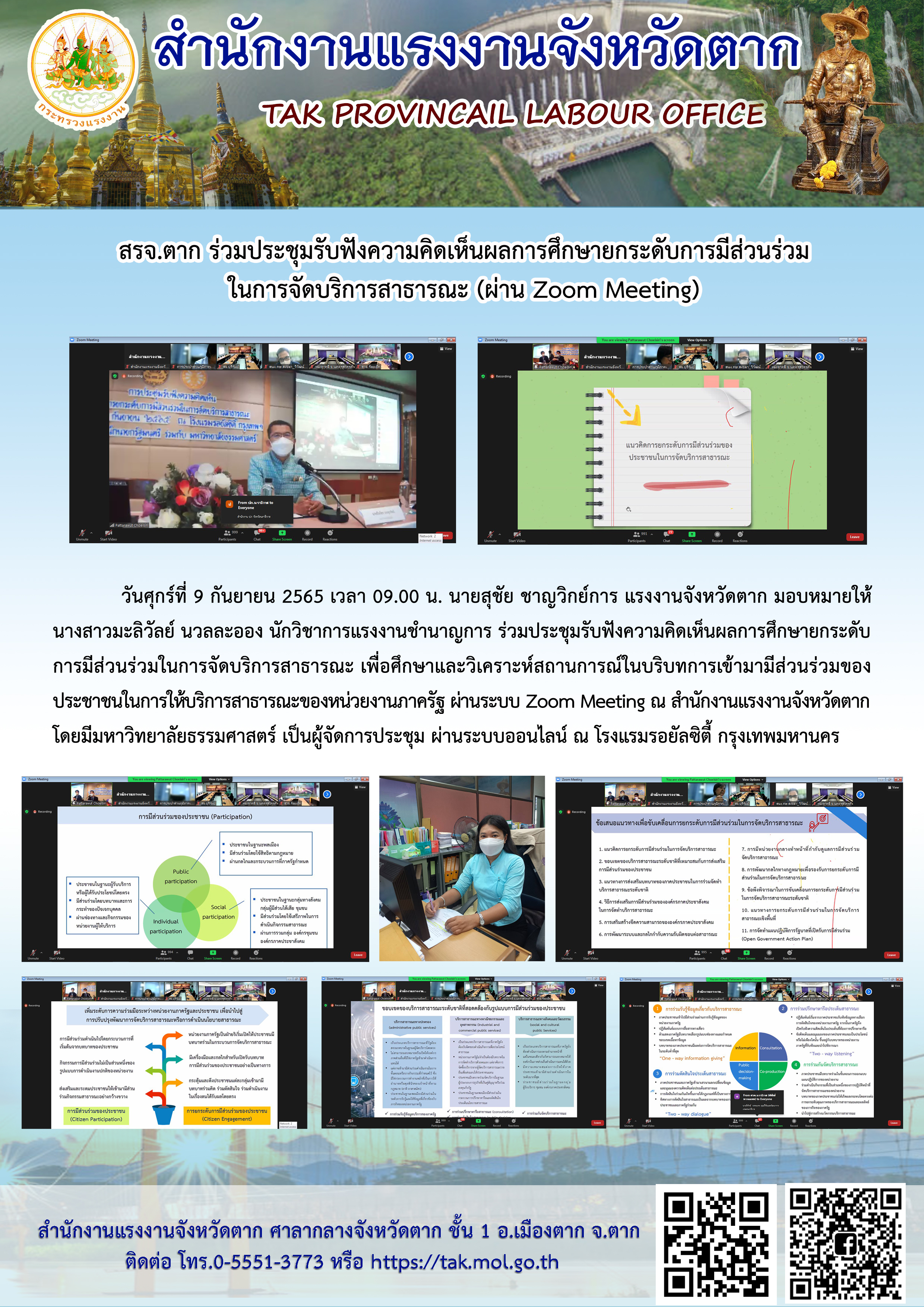 สรจ.ตาก ร่วมประชุมรับฟังความคิดเห็นผลการศึกษายกระดับการมีส่วนร่วมในการจัดบริการสาธารณะ (ผ่าน Zoom Meeting)