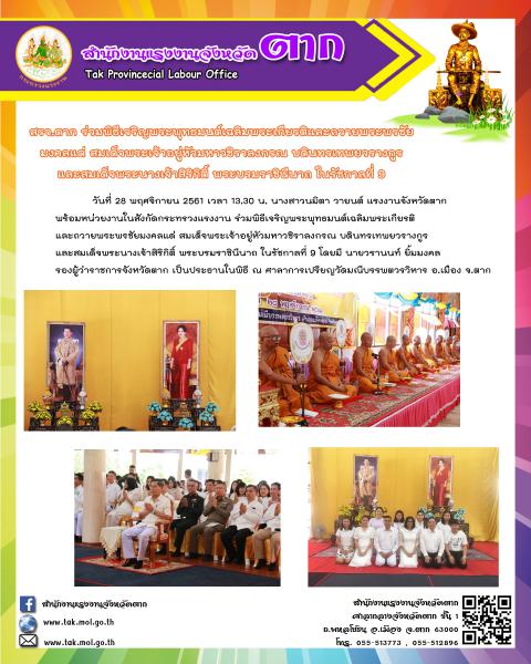 สรจ.ตาก ร่วมพิธีเจริญพระพุทธมนต์เฉลิมพระเกียรติและถวายพระพรชัยมงคลแด่ สมเด็จพระเจ้าอยู่หัวมหาวชิราลงกรณ บดินทรเทพยวรางกูร และสมเด็จพระนางเจ้าสิริกิติ์ พระบรมราชินีนาถ ในรัชกาลที่ 9