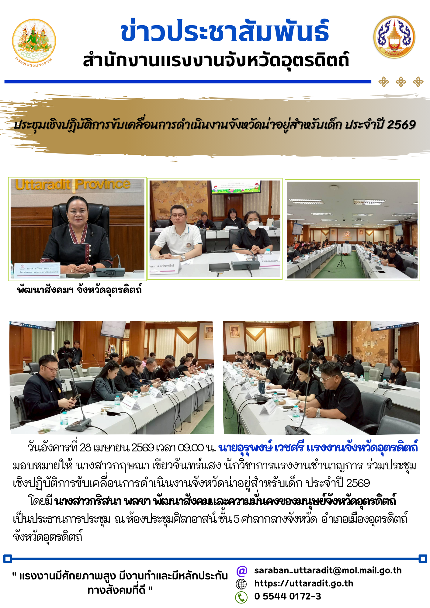 สรจ.อุตรดิตถ์ ร่วมประชุมเชิงปฏิบัติการขับเคลื่อนการดำเนินงานจังหวัดน่าอยู่สำหรับเด็ก ประจำปี 2569