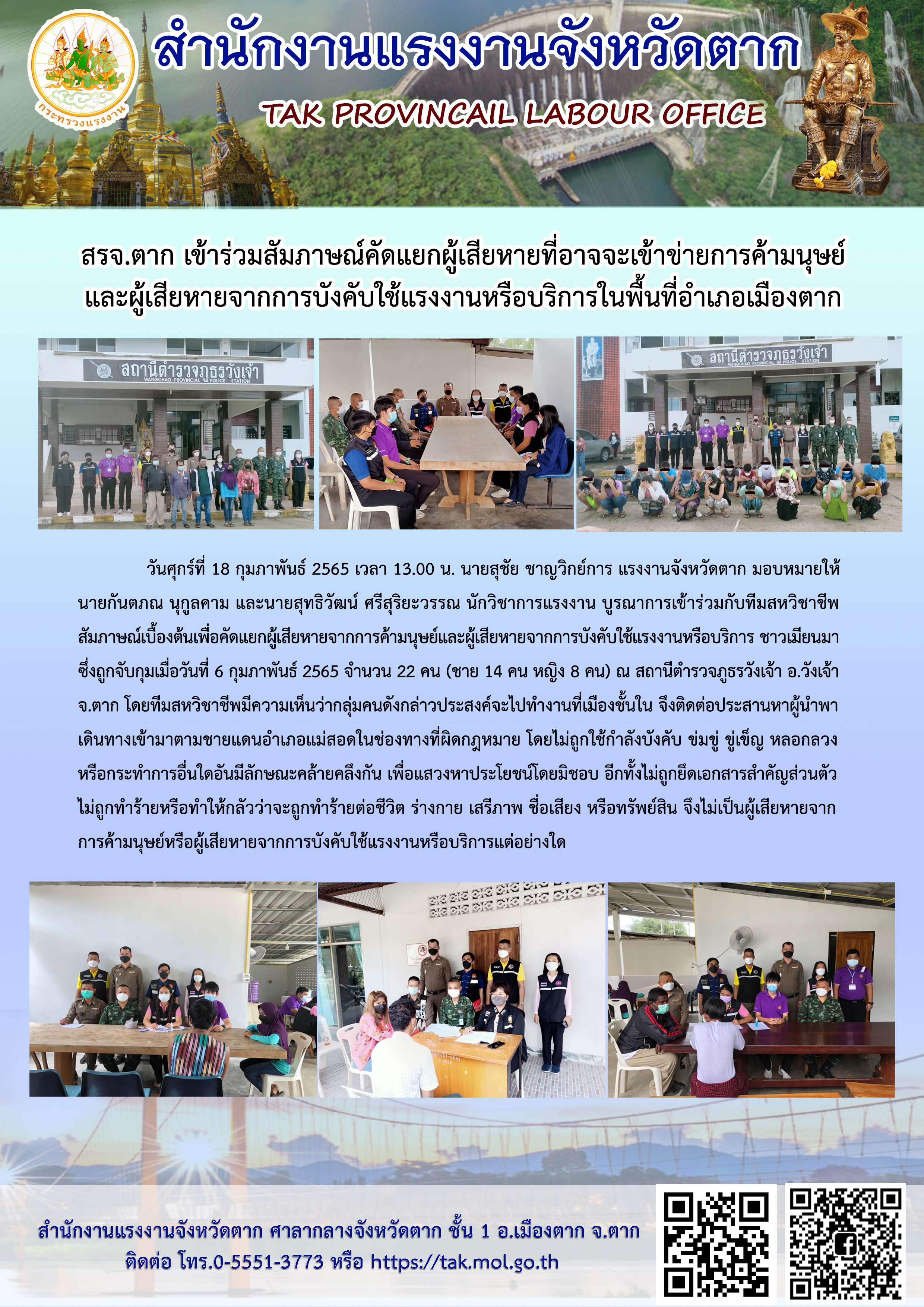 สรจ.ตาก เข้าร่วมสัมภาษณ์คัดแยกผู้เสียหายที่อาจจะเข้าข่ายการค้ามนุษย์และผู้เสียหายจากการบังคับใช้แรงงานหรือบริการในพื้นที่อำเภอวังเจ้า