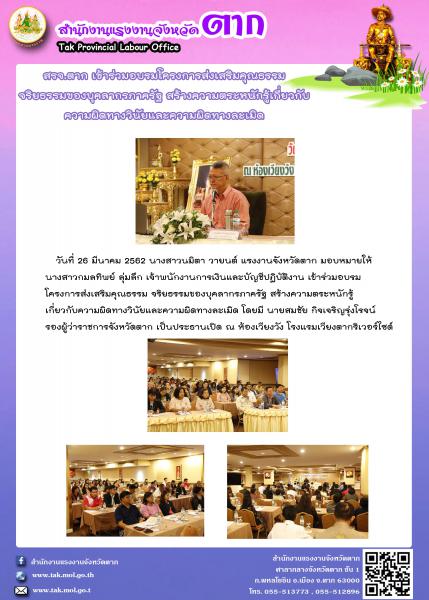 สรจ.ตาก เข้าร่วมอบรมโครงการส่งเสริมคุณธรรม จริยธรรมของบุคลากรภาครัฐ สร้างความตระหนักรู้เกี่ยวกับ ความผิดทางวินัยและความผิดทางละเมิด