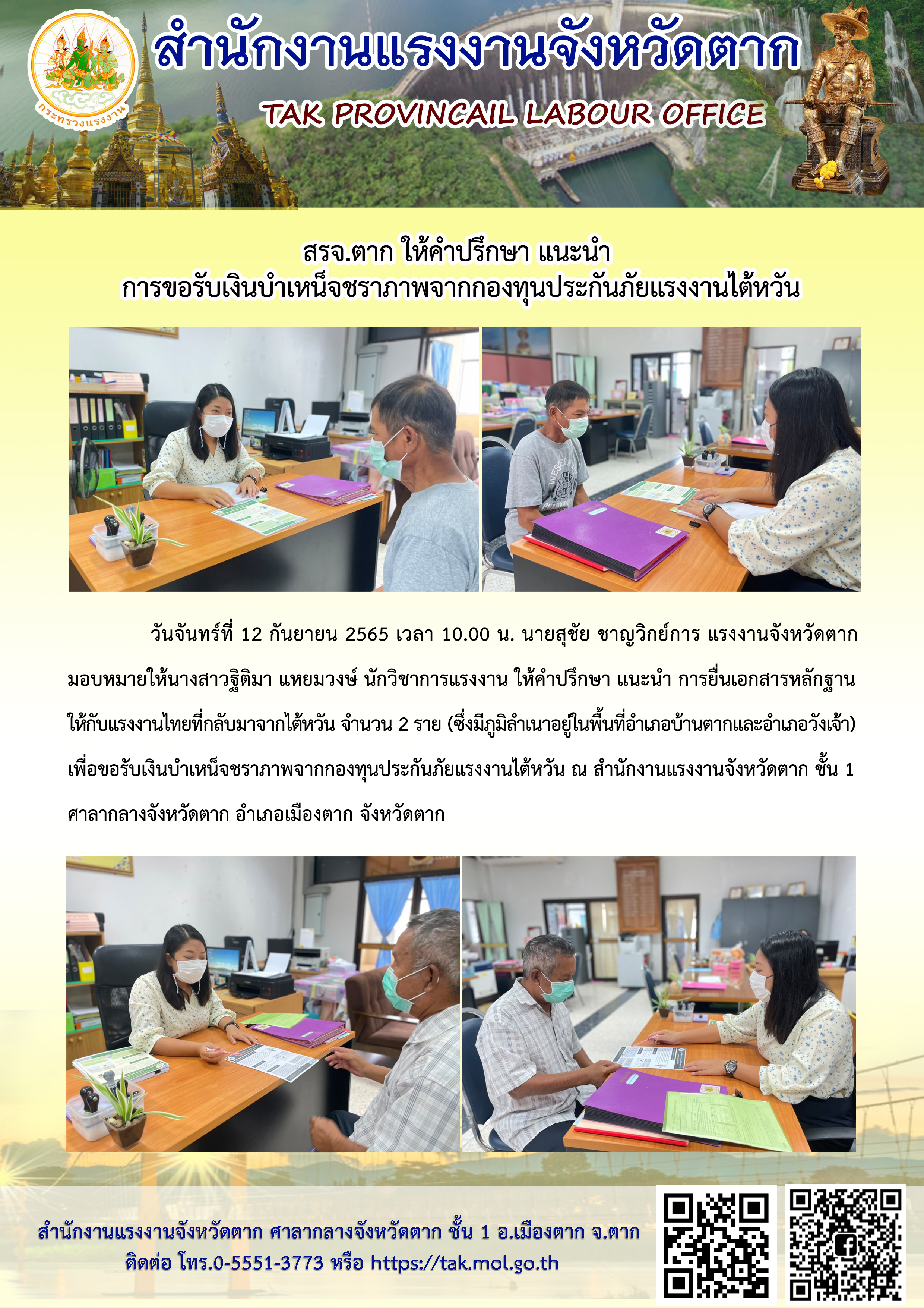 สรจ.ตาก ให้คำปรึกษา แนะนำ การขอรับเงินบำเหน็จชราภาพ จากกองทุนประกันภัยแรงงานไต้หวัน