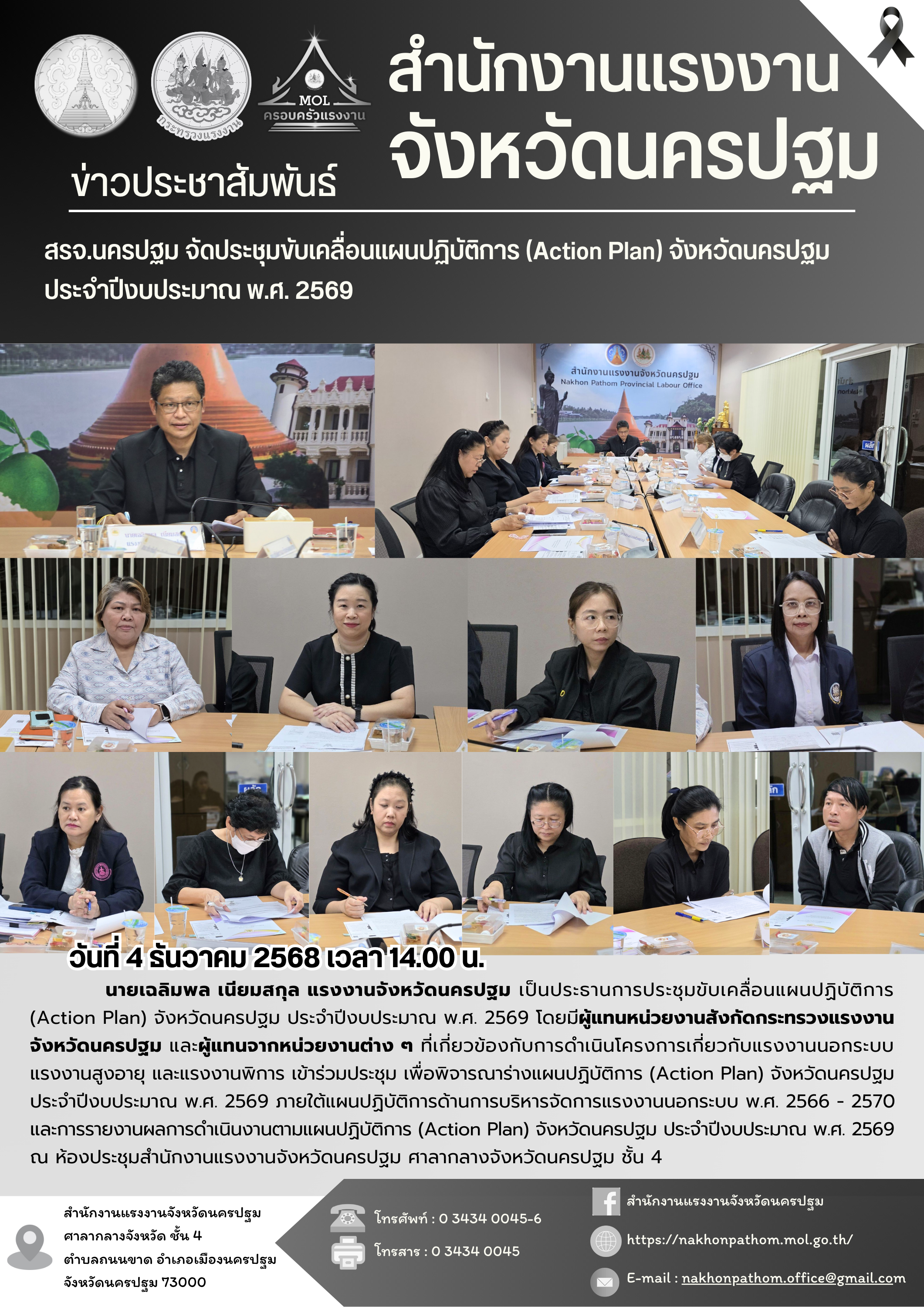 สรจ.นครปฐม จัดประชุมขับเคลื่อนแผนปฏิบัติการ (Action Plan) จังหวัดนครปฐม ประจำปีงบประมาณ พ.ศ. 2569