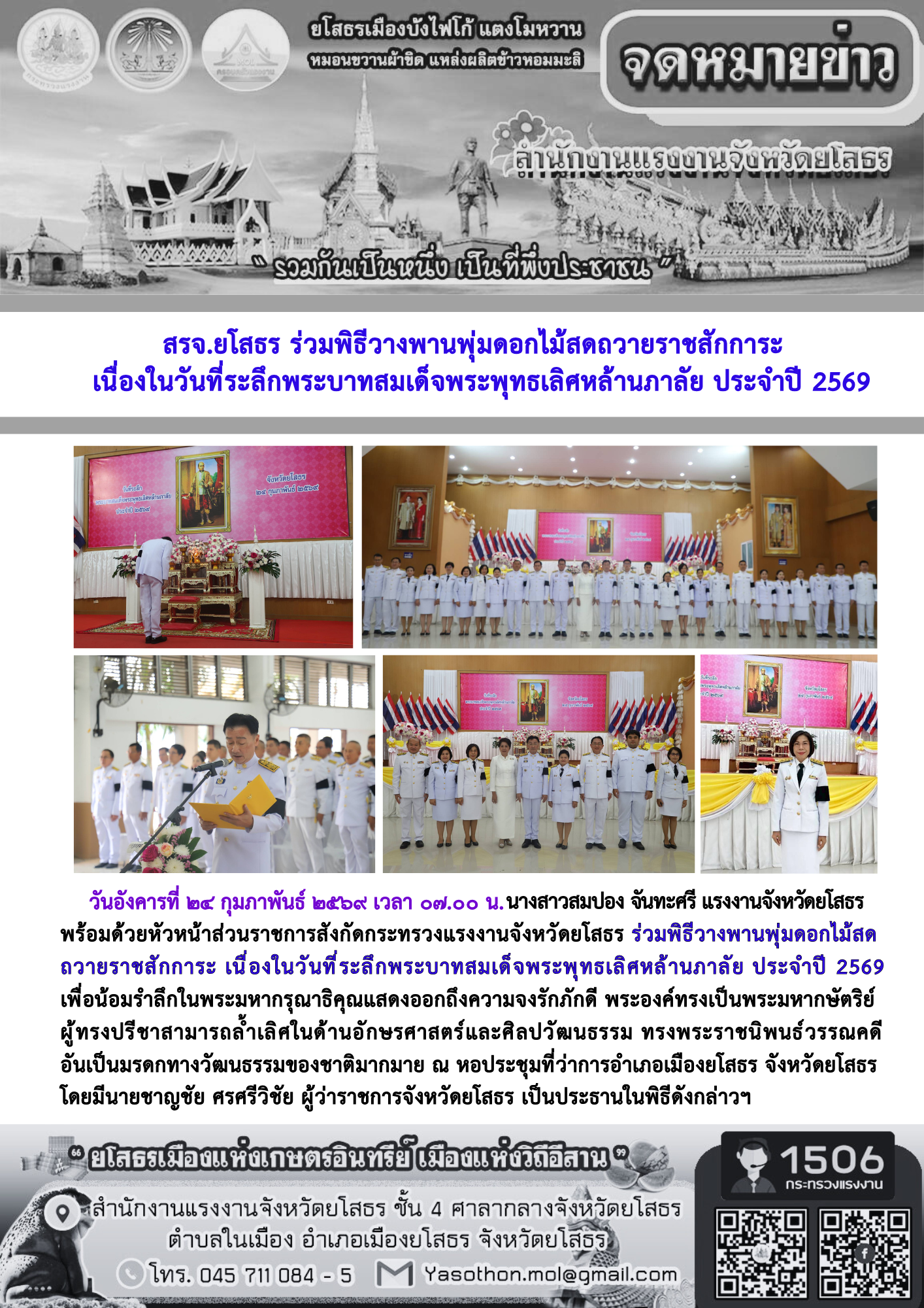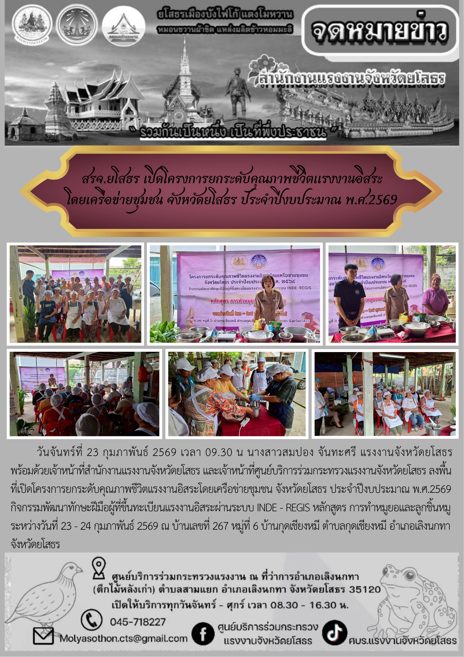 วันที่ 24 กุมภาพันธ์ 2569 เวลา 13.30 น. นายเฉลิมพล เนียมสกุล แรงงานจังหวัดนครปฐม มอบหมายให้นางสุดารัตน์ รักราชการ นักวิชาการแรงงานชำนาญการ จัดกิจกรรมสร้างความรู้ ความเข้าใจ และสร้างภูมิคุ้มกันยาเสพติดให้กับสมาชิกชมรม TO BE NUMBER ONE ร่วมกับสำนักงานสาธารณสุขอำเภอพุทธมณฑล ณ บริษัท ซีพี แอ็กซ์ตร้า จำกัด (มหาชน) สาขาศาลายา ตำบลศาลายา อำเภอพุทธมณฑล จังหวัดนครปฐม โดยมีผู้เข้าร่วมกิจกรรม จำนวน 40 คน