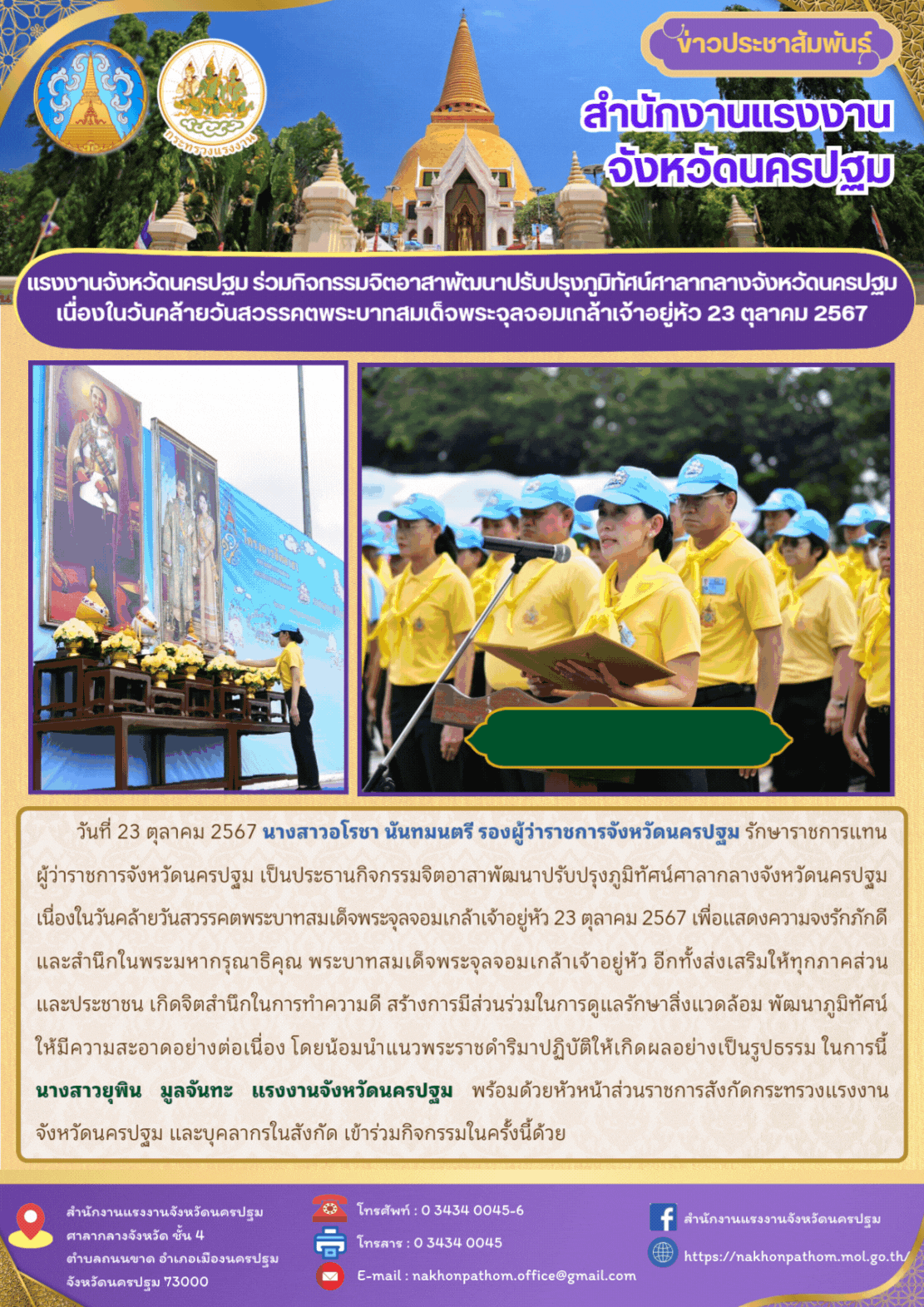 สรจ.นครปฐม ร่วมกิจกรรมจิตอาสาพัฒนาปรับปรุงภูมิทัศน์ศาลากลางจังหวัดนครปฐม เนื่องในวันคล้ายวันสวรรคตพระบาทสมเด็จพระจุลจอมเกล้าเจ้าอยู่หัว 23 ตุลาคม 2567