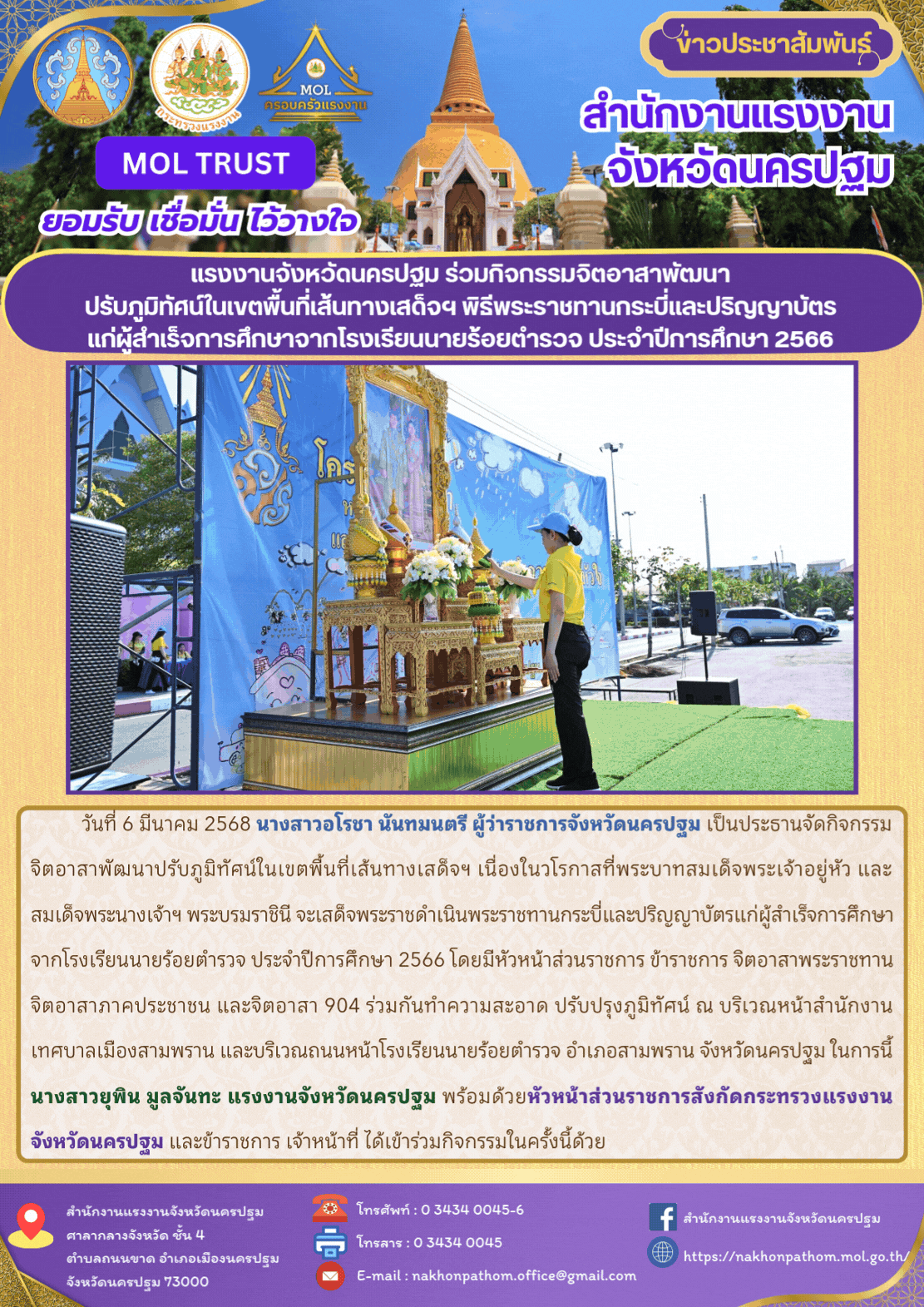 สรจ.นครปฐม ร่วมกิจกรรมจิตอาสาพัฒนาปรับภูมิทัศน์ในเขตพื้นที่เส้นทางเสด็จฯ พิธีพระราชทานกระบี่และปริญญาบัตรแก่ผู้สำเร็จการศึกษาจากโรงเรียนนายร้อยตำรวจ ประจำปีการศึกษา 2566