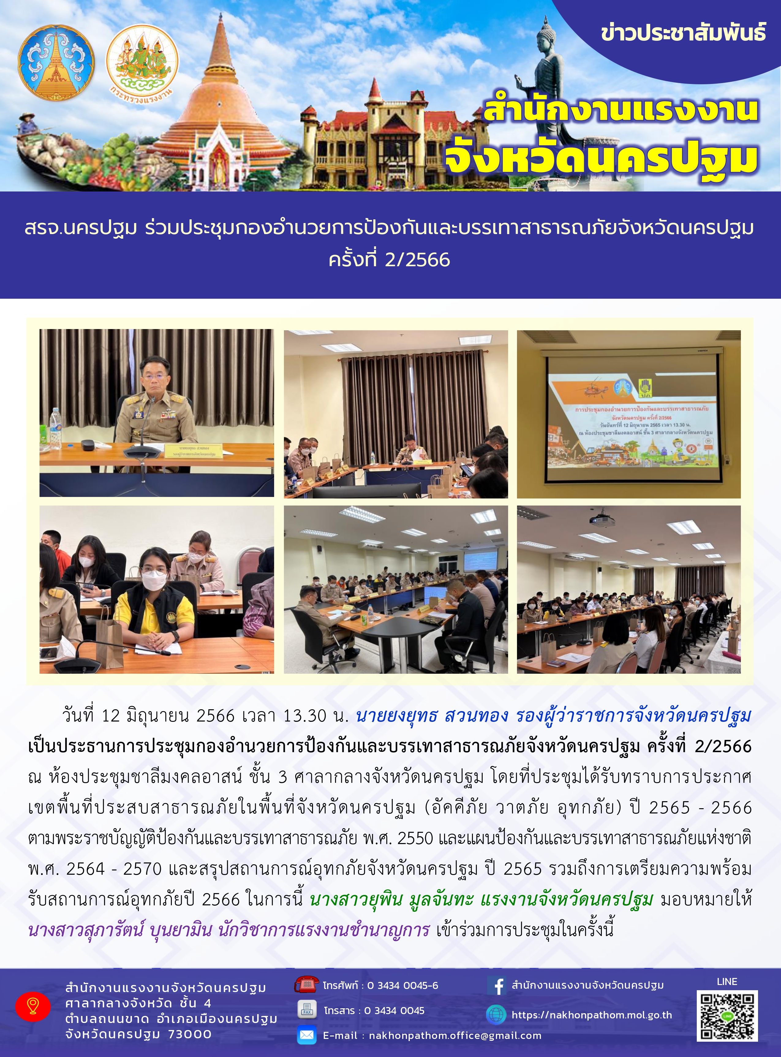 สรจ.นครปฐม ร่วมประชุมกองอำนวยการป้องกันและบรรเทาสาธารณภัยจังหวัดนครปฐม ครั้งที่ 2/2566