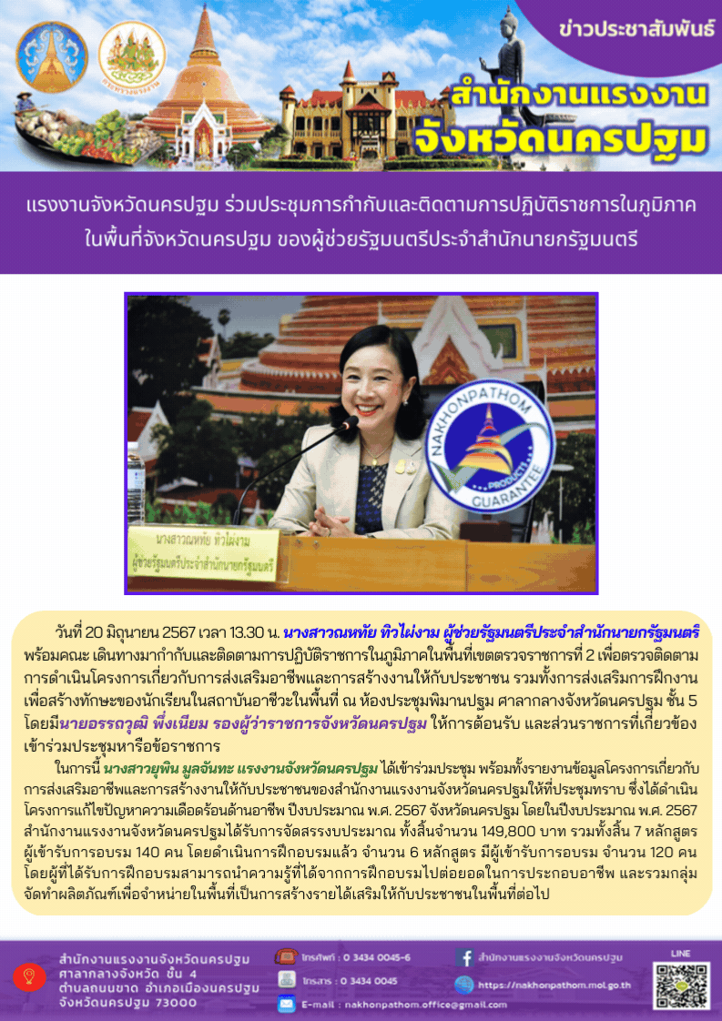 สรจ.นครปฐม ร่วมประชุมการกำกับและติดตามการปฏิบัติราชการในภูมิภาคในพื้นที่จังหวัดนครปฐม ของผู้ช่วยรัฐมนตรีประจำสำนักนายกรัฐมนตรี
