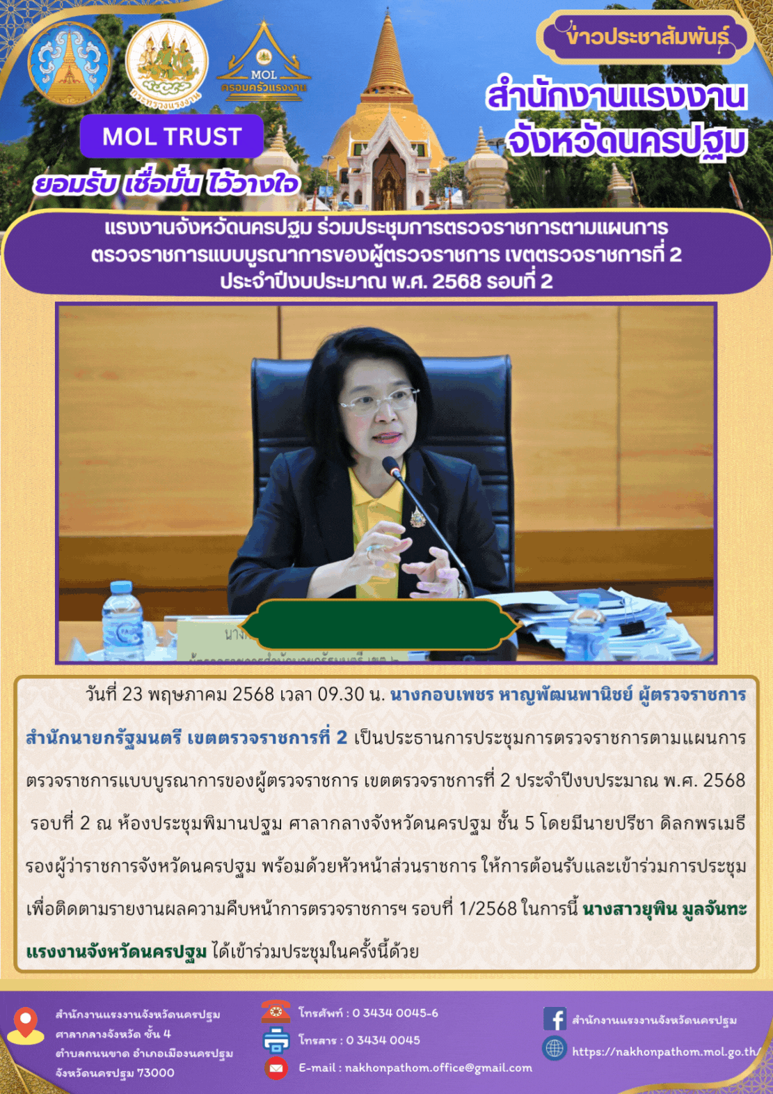 สรจ.นครปฐม ร่วมประชุมการตรวจราชการตามแผนการตรวจราชการแบบบูรณาการของผู้ตรวจราชการ เขตตรวจราชการที่ 2 ประจําปีงบประมาณ พ.ศ. 2568 รอบที่ 2
