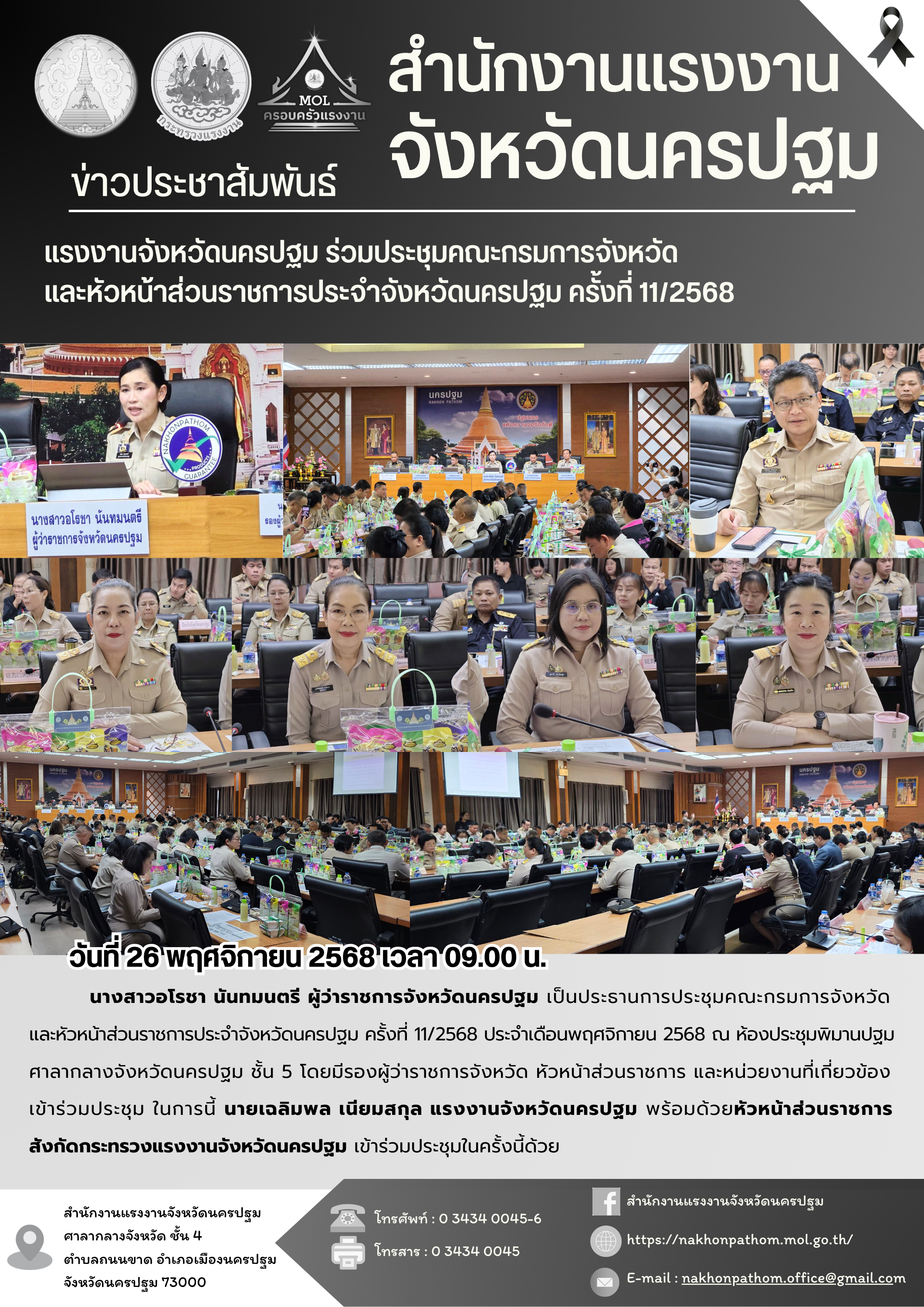 สรจ.นครปฐม ร่วมประชุมคณะกรมการจังหวัดและหัวหน้าส่วนราชการประจำจังหวัดนครปฐม ครั้งที่ 11/2568