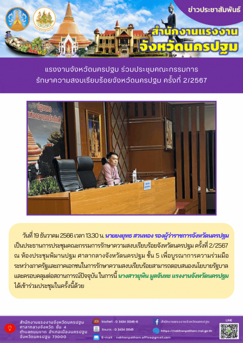 สรจ.นครปฐม ร่วมประชุมคณะกรรมการรักษาความสงบเรียบร้อยจังหวัดนครปฐม ครั้งที่ 2/2567