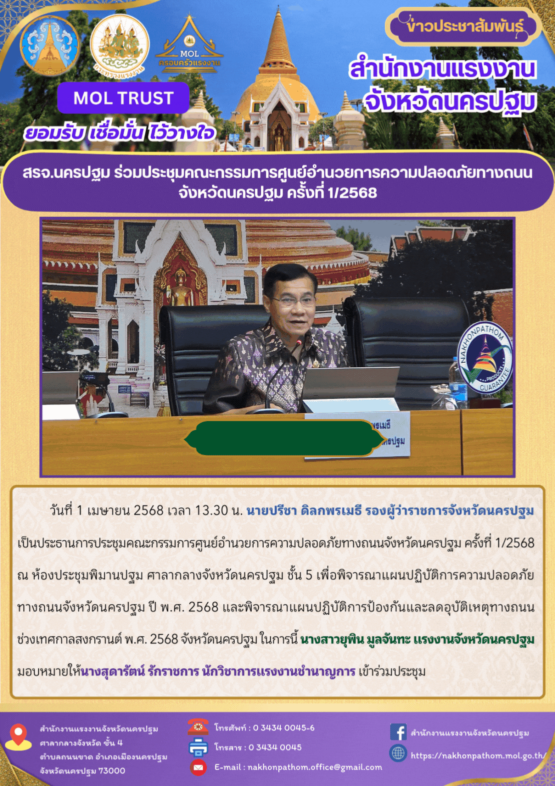 สรจ.นครปฐม ร่วมประชุมคณะกรรมการศูนย์อำนวยการความปลอดภัยทางถนนจังหวัดนครปฐม ครั้งที่ 1/2568