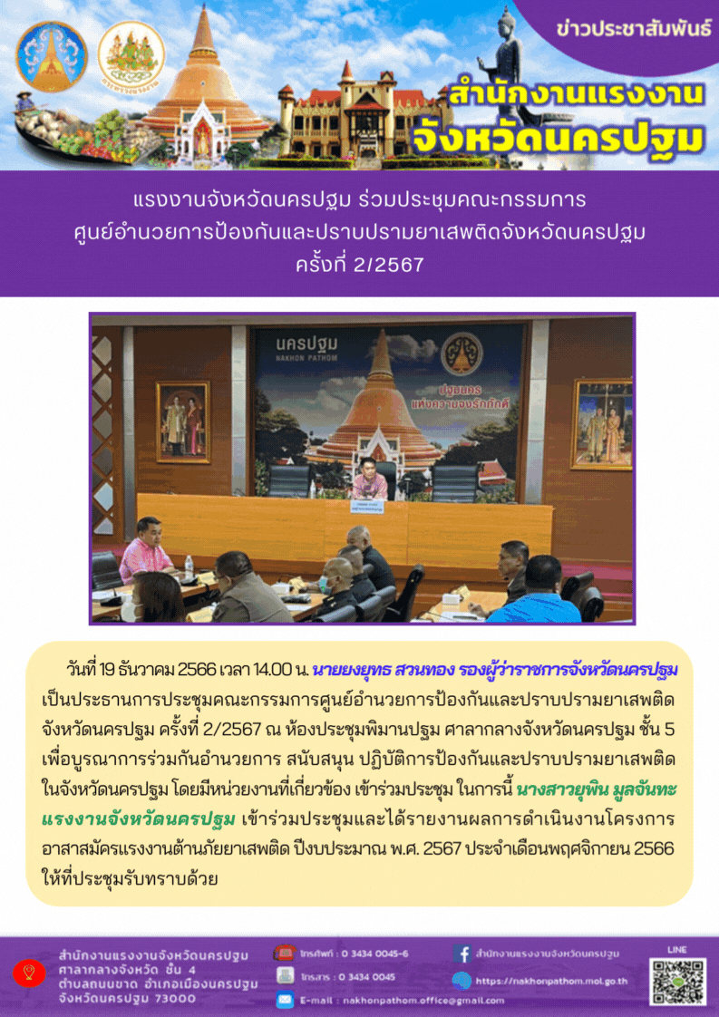 สรจ.นครปฐม ร่วมประชุมคณะกรรมการศูนย์อำนวยการป้องกันและปราบปรามยาเสพติดจังหวัดนครปฐม ครั้งที่ 2/2567