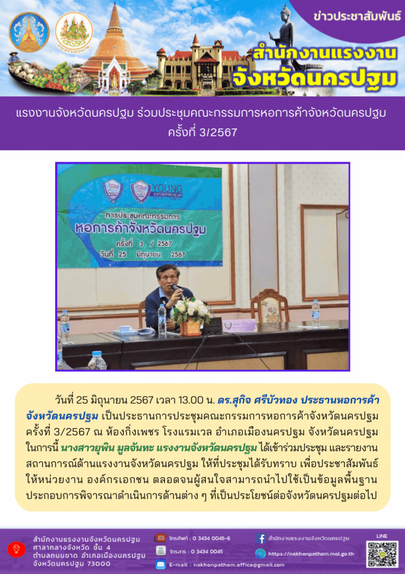 สรจ.นครปฐม ร่วมประชุมคณะกรรมการหอการค้าจังหวัดนครปฐม ครั้งที่ 3/2567