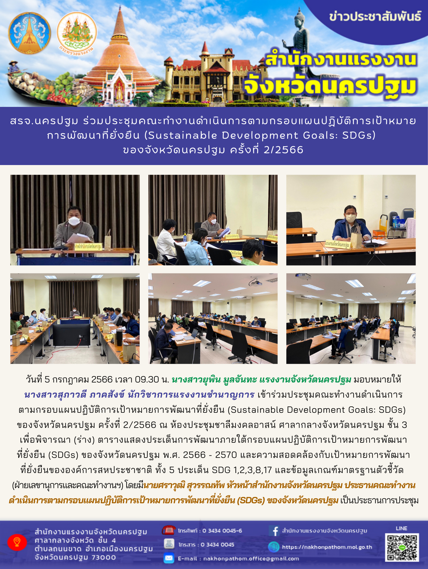 สรจ.นครปฐม ร่วมประชุมคณะทำงานดำเนินการตามกรอบแผนปฏิบัติการเป้าหมายการพัฒนาที่ยั่งยืน (Sustainable Development Goals: SDGs) ของจังหวัดนครปฐม ครั้งที่ 2/2566