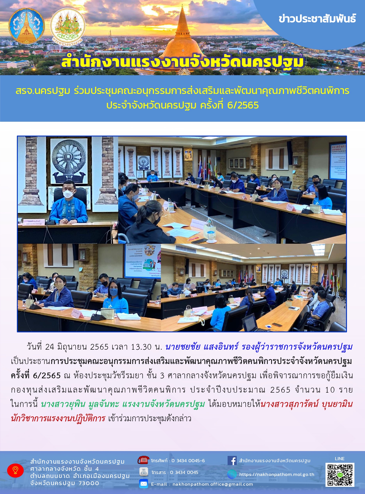 สรจ.นครปฐม ร่วมประชุมคณะอนุกรรมการส่งเสริมและพัฒนาคุณภาพชีวิตคนพิการประจำจังหวัดนครปฐม ครั้งที่ 6/2565