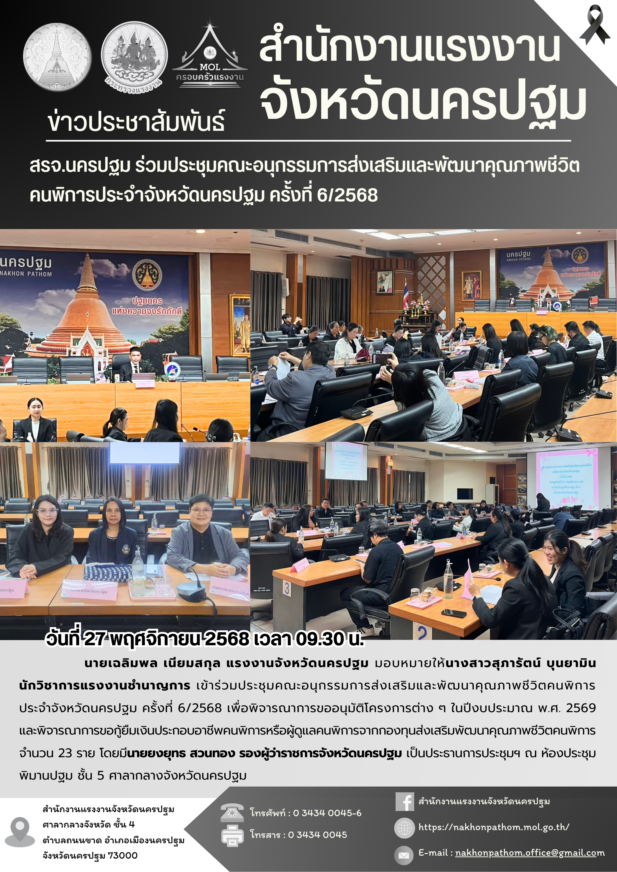 สรจ.นครปฐม ร่วมประชุมคณะอนุกรรมการส่งเสริมและพัฒนาคุณภาพชีวิตคนพิการประจำจังหวัดนครปฐม ครั้งที่ 6/2568