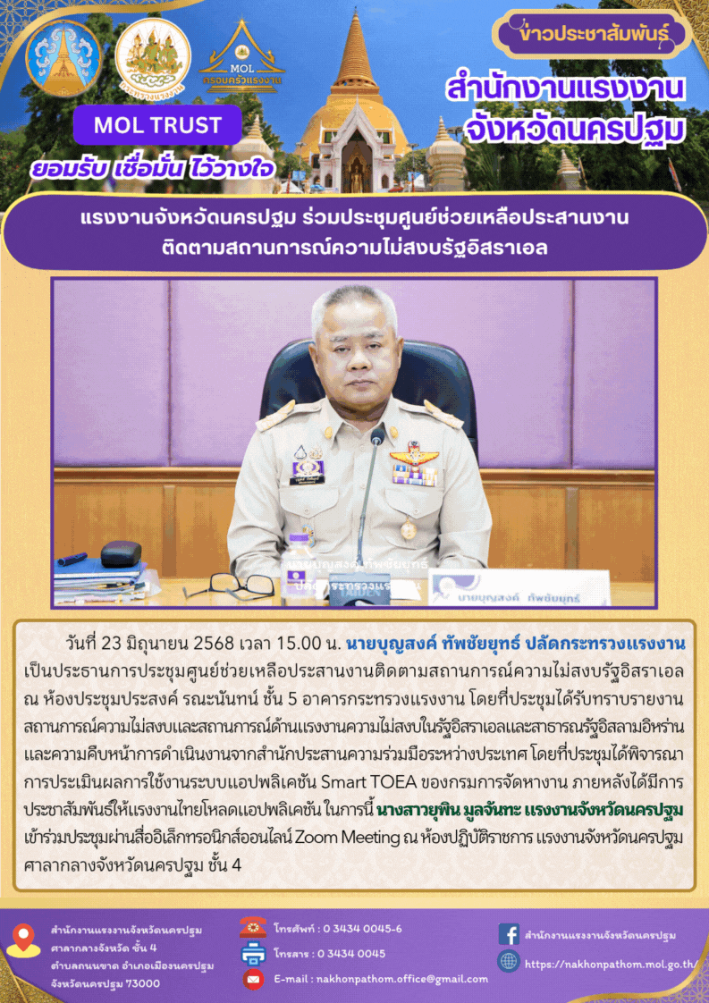 สรจ.นครปฐม ร่วมประชุมศูนย์ช่วยเหลือประสานงานติดตามสถานการณ์ความไม่สงบรัฐอิสราเอล
