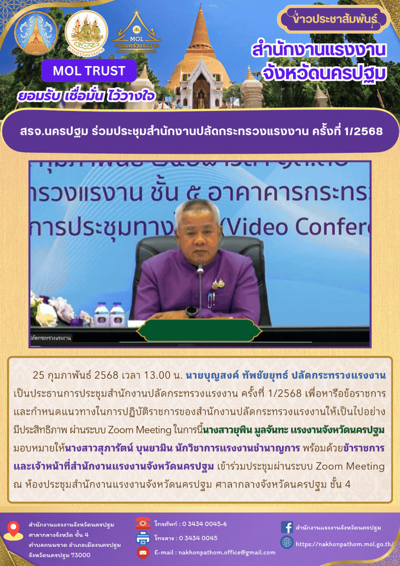 สรจ.นครปฐม ร่วมประชุมสำนักงานปลัดกระทรวงแรงงาน ครั้งที่ 1/2568