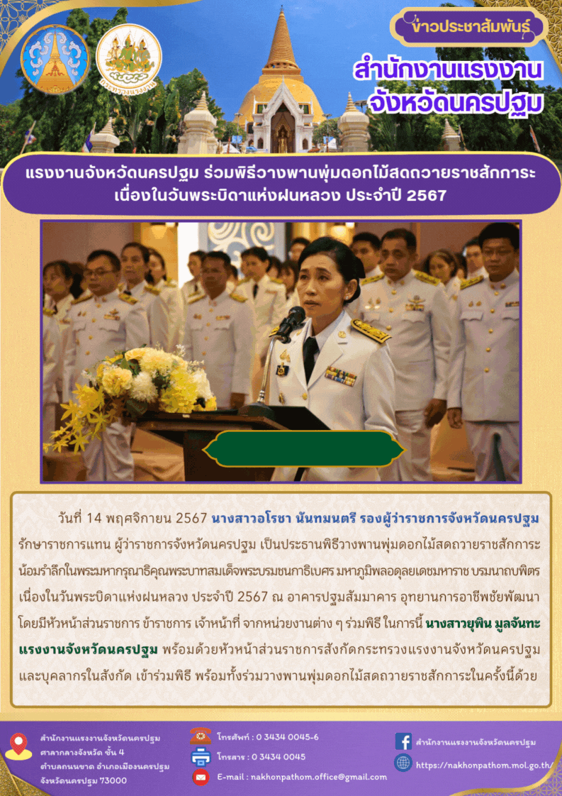 สรจ.นครปฐม ร่วมพิธีวางพานพุ่มดอกไม้สดถวายราชสักการะ เนื่องในวันพระบิดาแห่งฝนหลวง ประจำปี 2567