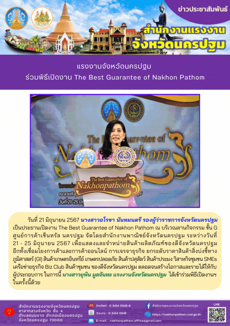 สรจ.นครปฐม ร่วมพิธีเปิดงาน The Best Guarantee of Nakhon Pathom