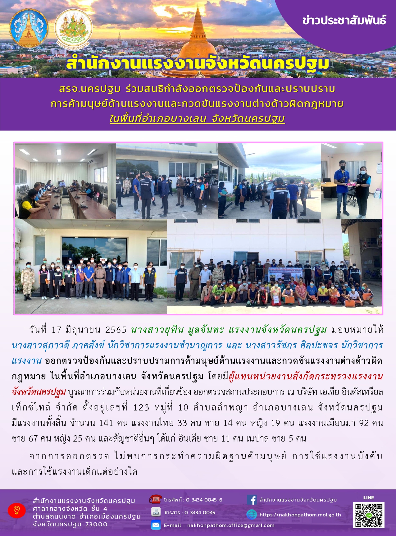 สรจ.นครปฐม ร่วมสนธิกำลังออกตรวจป้องกันและปราบปรามการค้ามนุษย์ด้านแรงงานและกวดขันแรงงานต่างด้าวผิดกฎหมาย ในพื้นที่อำเภอบางเลน จังหวัดนครปฐม