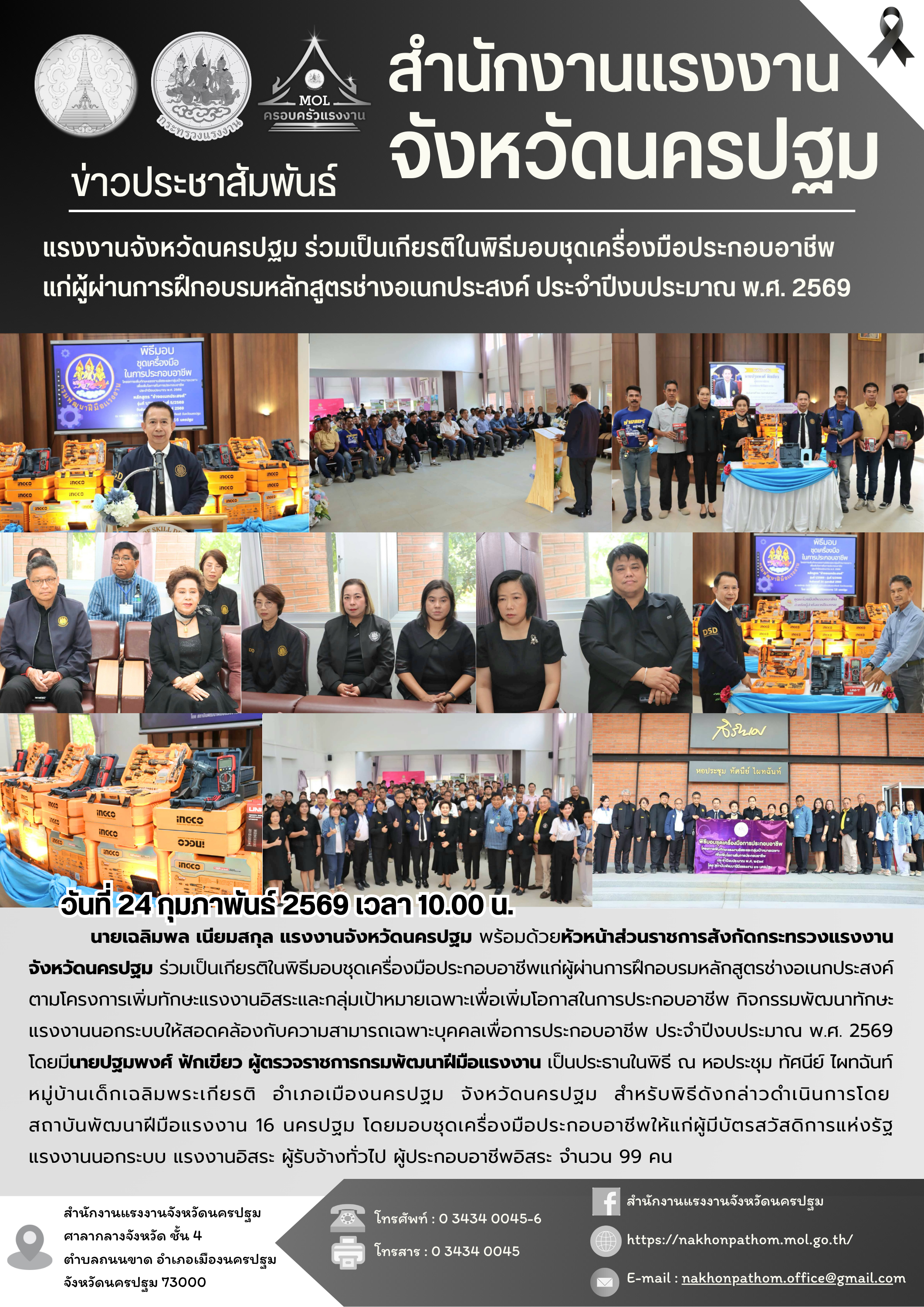 สรจ.นครปฐม ร่วมเป็นเกียรติในพิธีมอบชุดเครื่องมือประกอบอาชีพแก่ผู้ผ่านการฝึกอบรม หลักสูตรช่างอเนกประสงค์ ประจำปีงบประมาณ พ.ศ. 2569