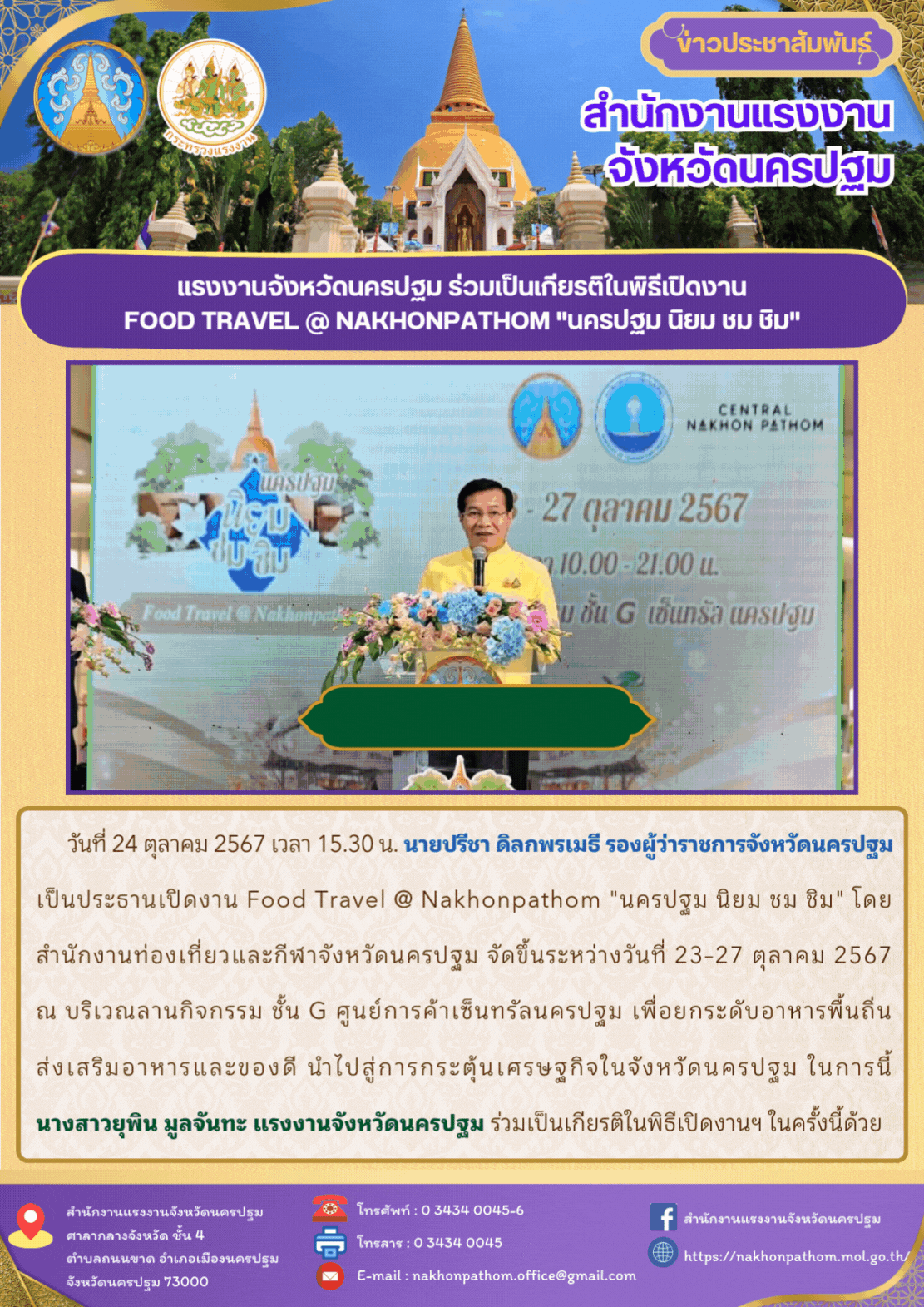 สรจ.นครปฐม ร่วมเป็นเกียรติในพิธีเปิดงาน Food Travel @ Nakhonpathom “นครปฐม นิยม ชม ชิม”