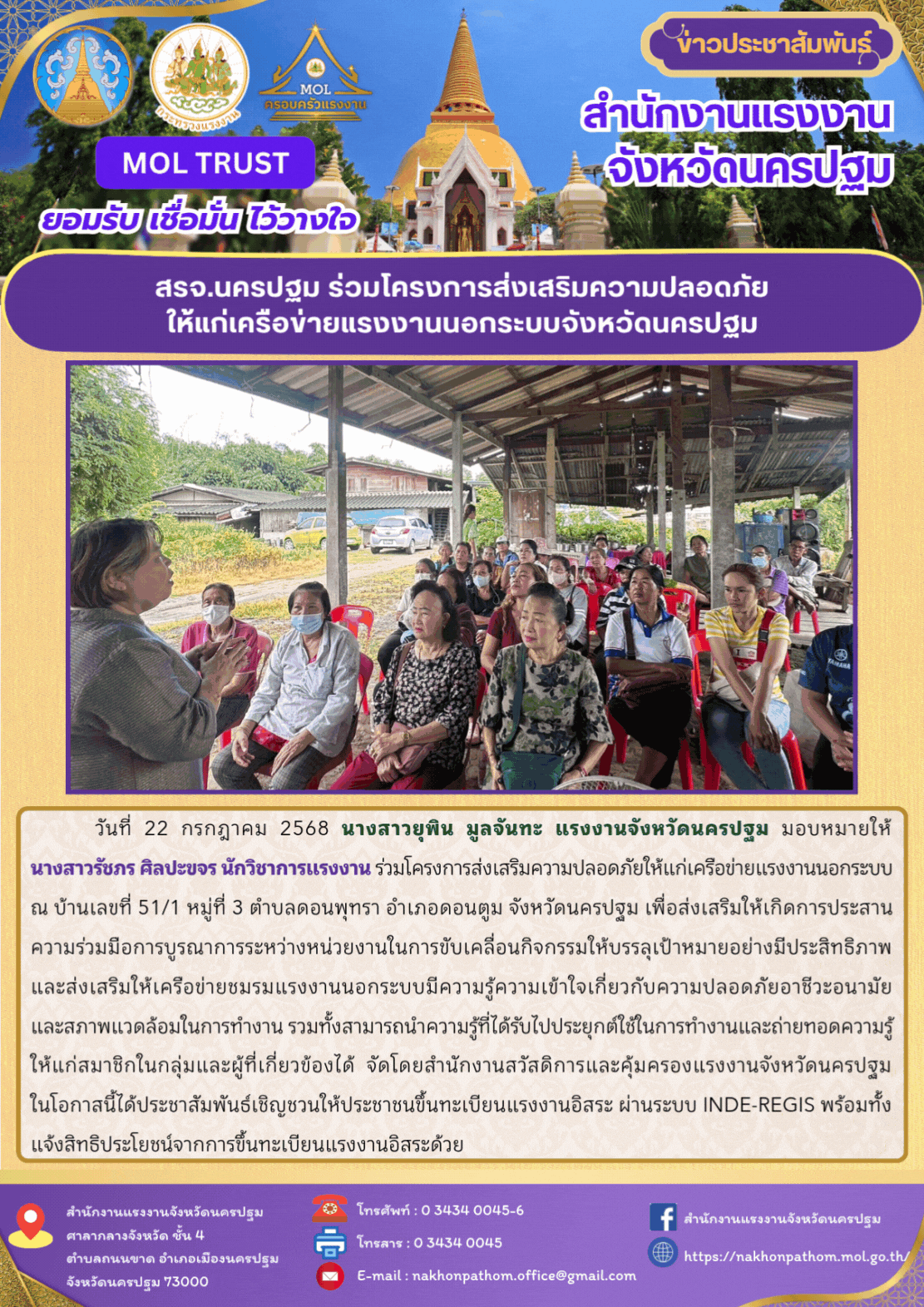 สรจ.นครปฐม ร่วมโครงการส่งเสริมความปลอดภัยให้แก่เครือข่ายแรงงานนอกระบบจังหวัดนครปฐม