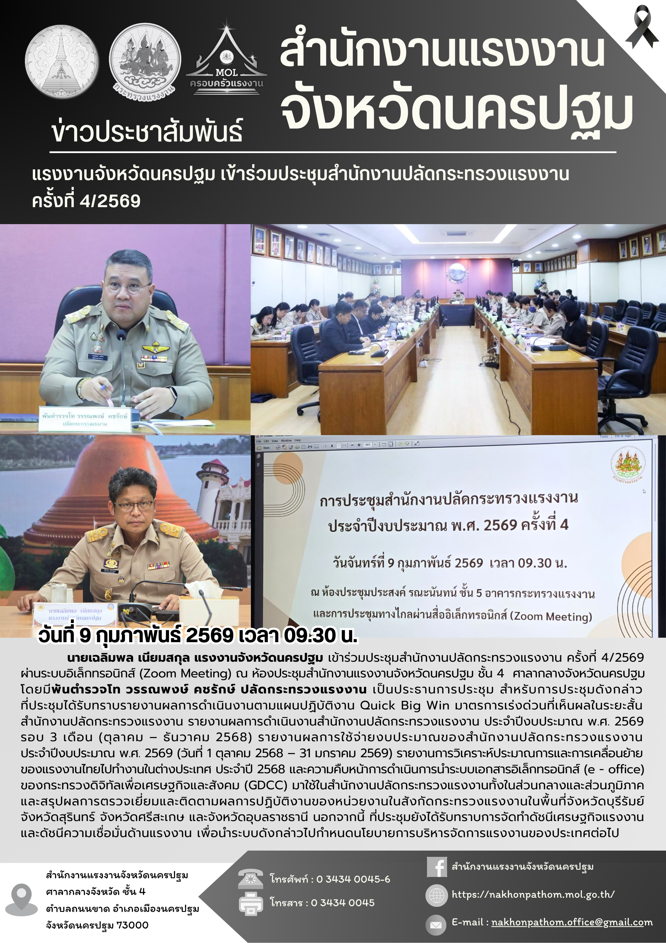 สรจ.นครปฐม เข้าร่วมประชุมสำนักงานปลัดกระทรวงแรงงาน ครั้งที่ 4/2569