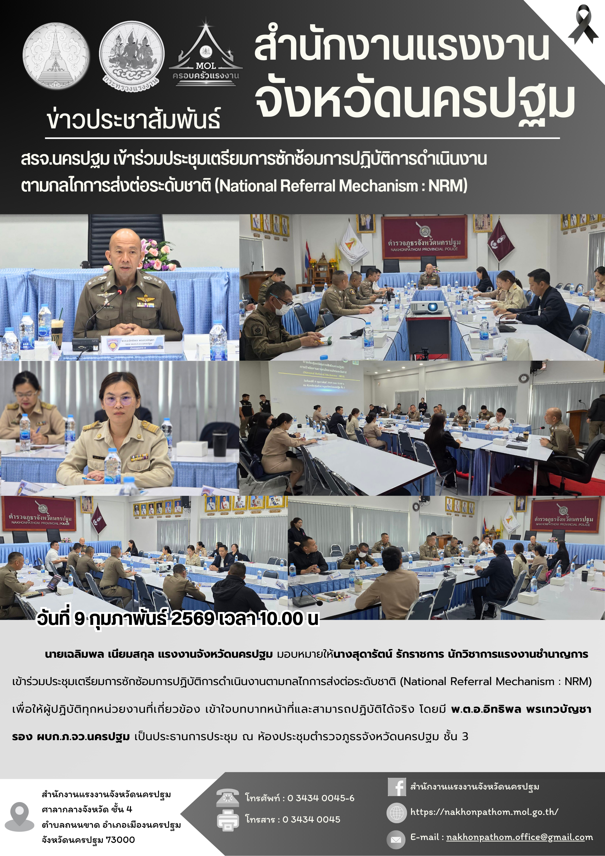 สรจ.นครปฐม เข้าร่วมประชุมเตรียมการซักซ้อมการปฏิบัติการดำเนินงานตามกลไกการส่งต่อระดับชาติ (National Referral Mechanism : NRM)