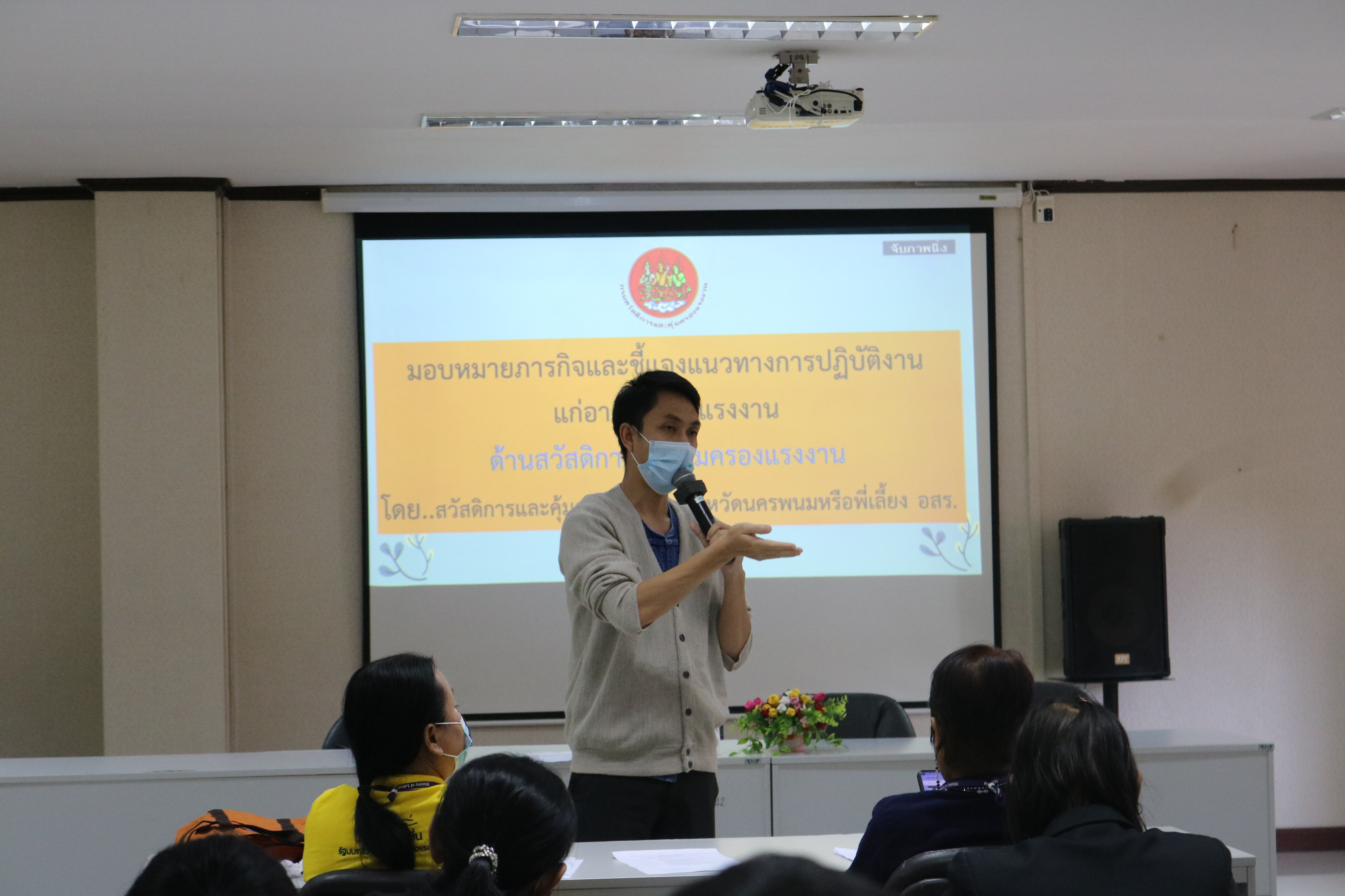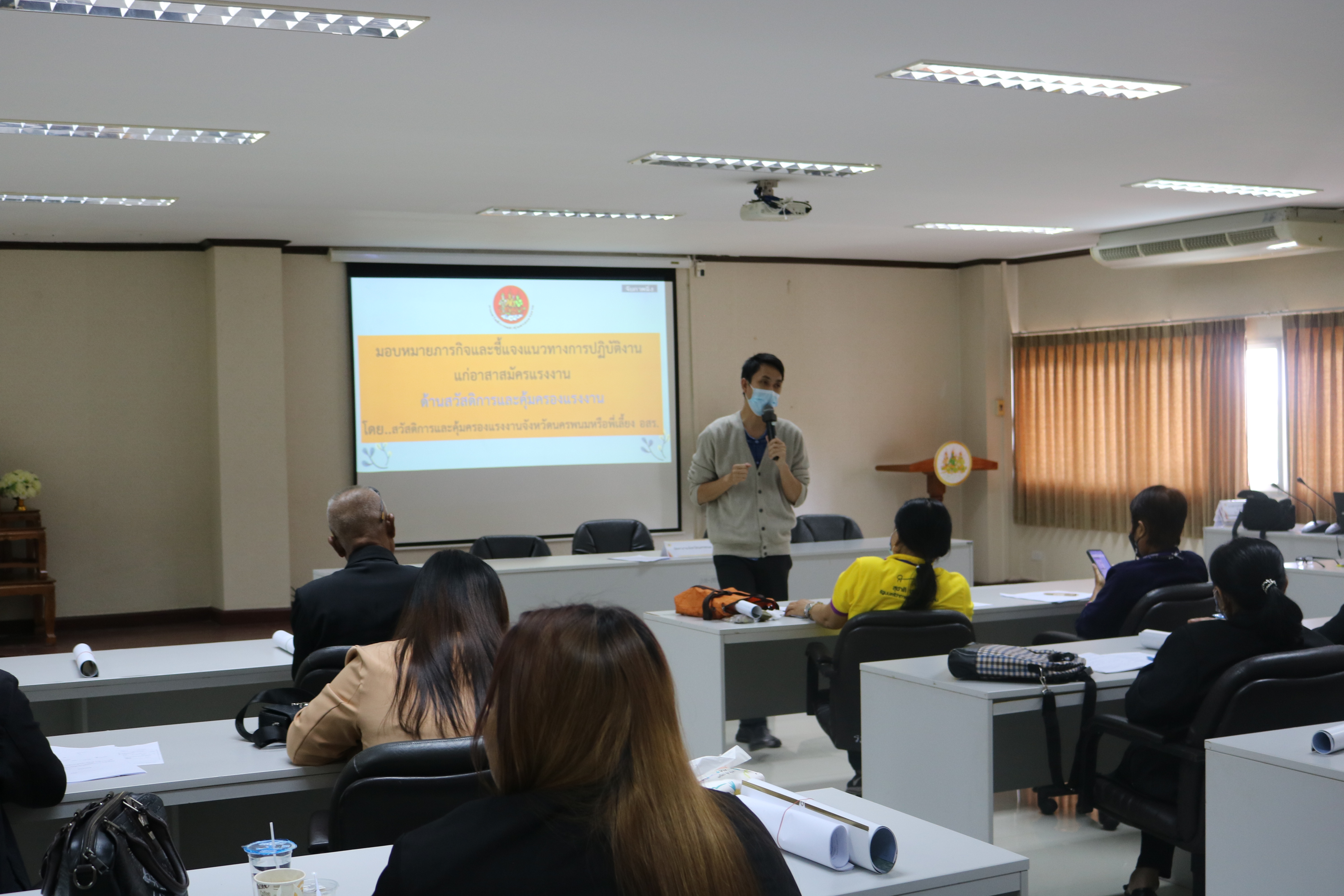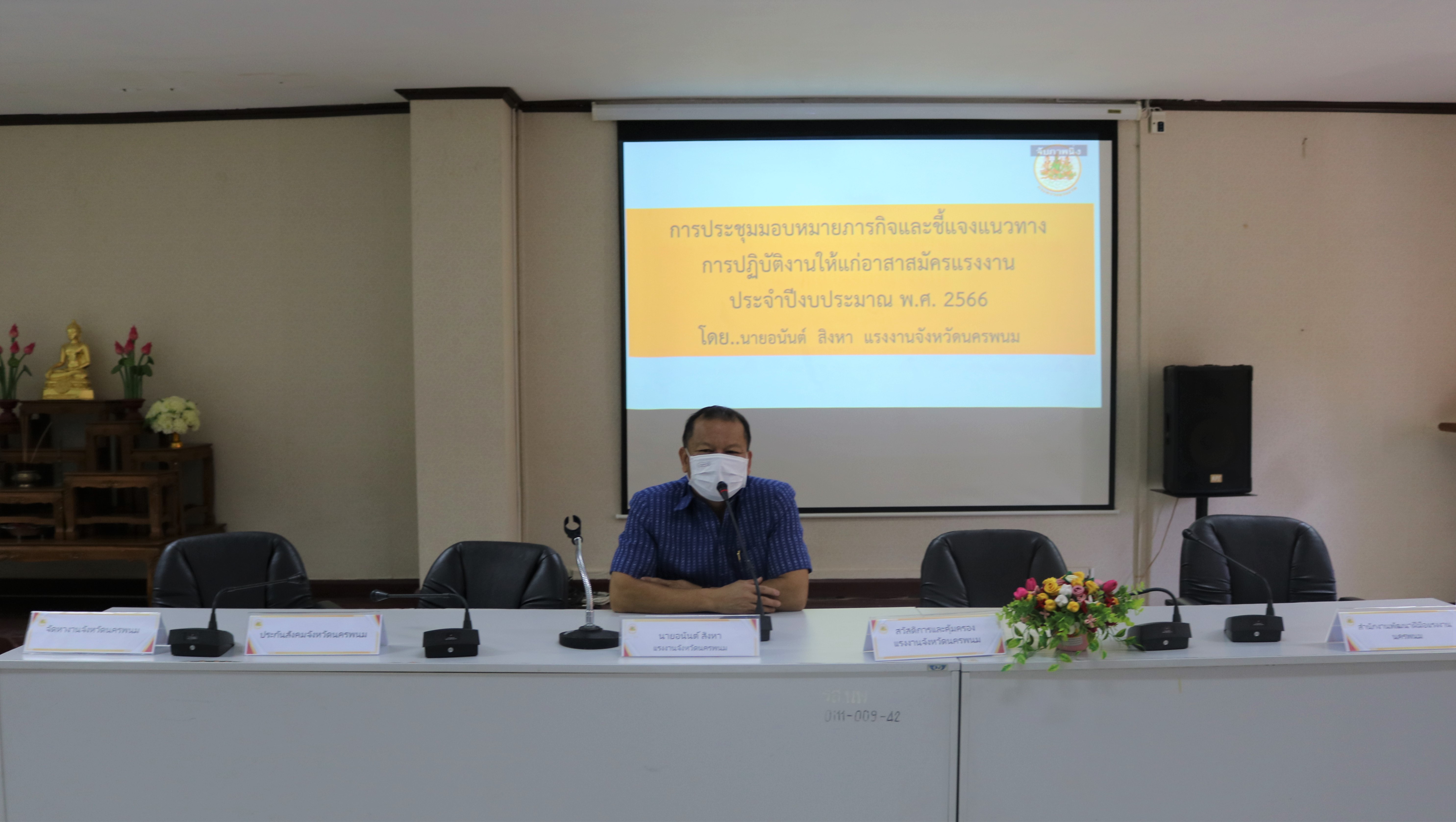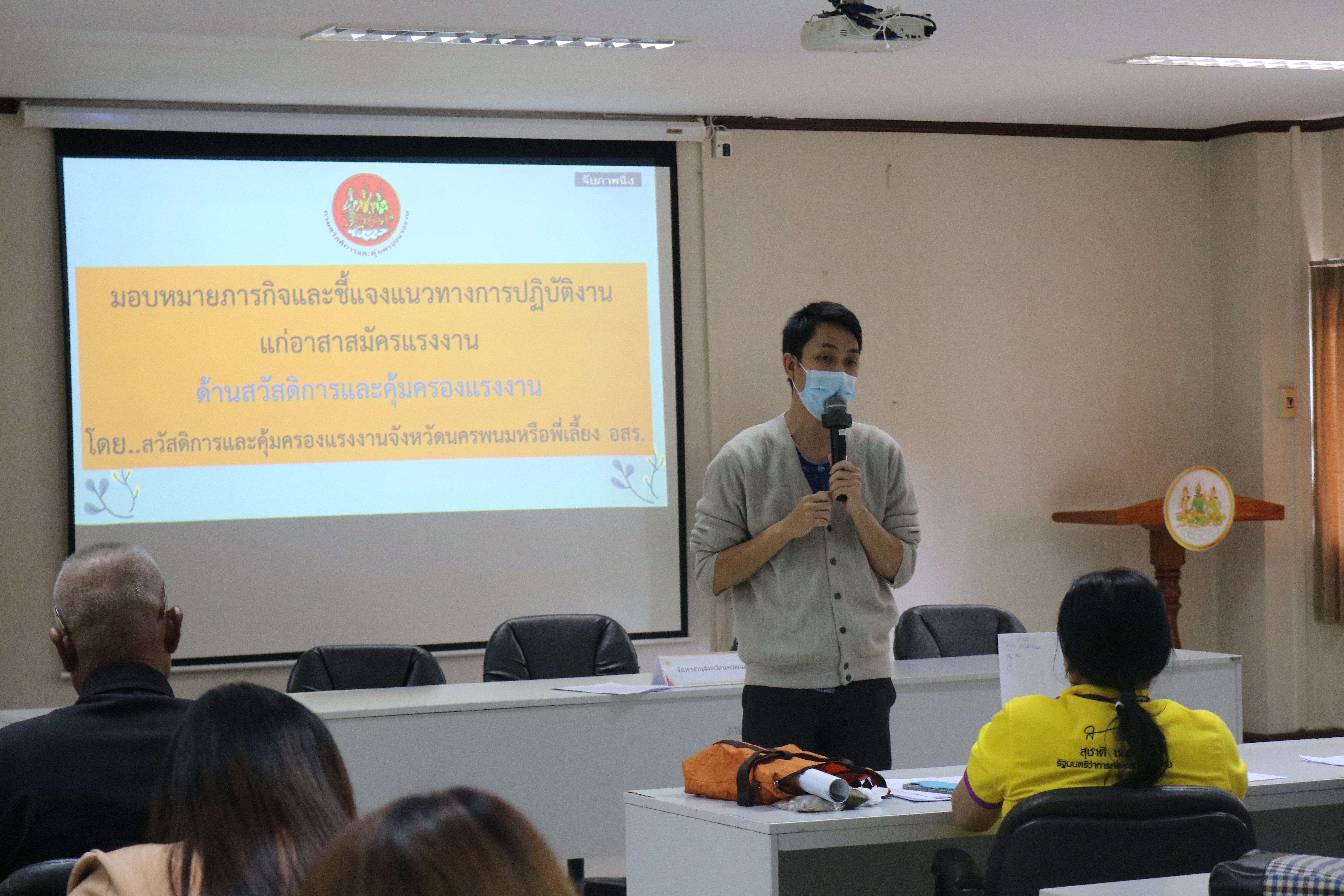 วันที่ 4 พฤศจิกายน 2565 เวลา 9:00 น. สำนักงานแรงงานจังหวัดนครพนม จัดประชุมมอบหมายภารกิจและชี้แจงแนวทางการปฏิบัติงานให้แก่อาสาสมัครประจำตำบล ประจำปีงบประมาณ พ.ศ. 2566 เพื่อรับมอบนโยบายและมอบหมายตามภารกิจ ทบทวนความรู้ ความเข้าใจในภารกิจของหน่วยงานในสังกัดกระทรวงแรงงาน และติดตามผลการปฏิบัติงาน ในเวลา 11:00 น. ได้ร่วมรับฟังบรรยายพิเศษเรื่อง “ความรู้เกี่ยวกับโรคมะเร็ง” จากนายแพทย์ธนุตม์ ก้วยเจริญพานิชก์ ผู้อำนวยการโรงพยาบาลมะเร็งชีวามิตรา ณ อาคารศูนย์ราชการกระทรวงแรงงานจังหวัดนครพนม ห้องประชุมนครพนม ชั้น 2