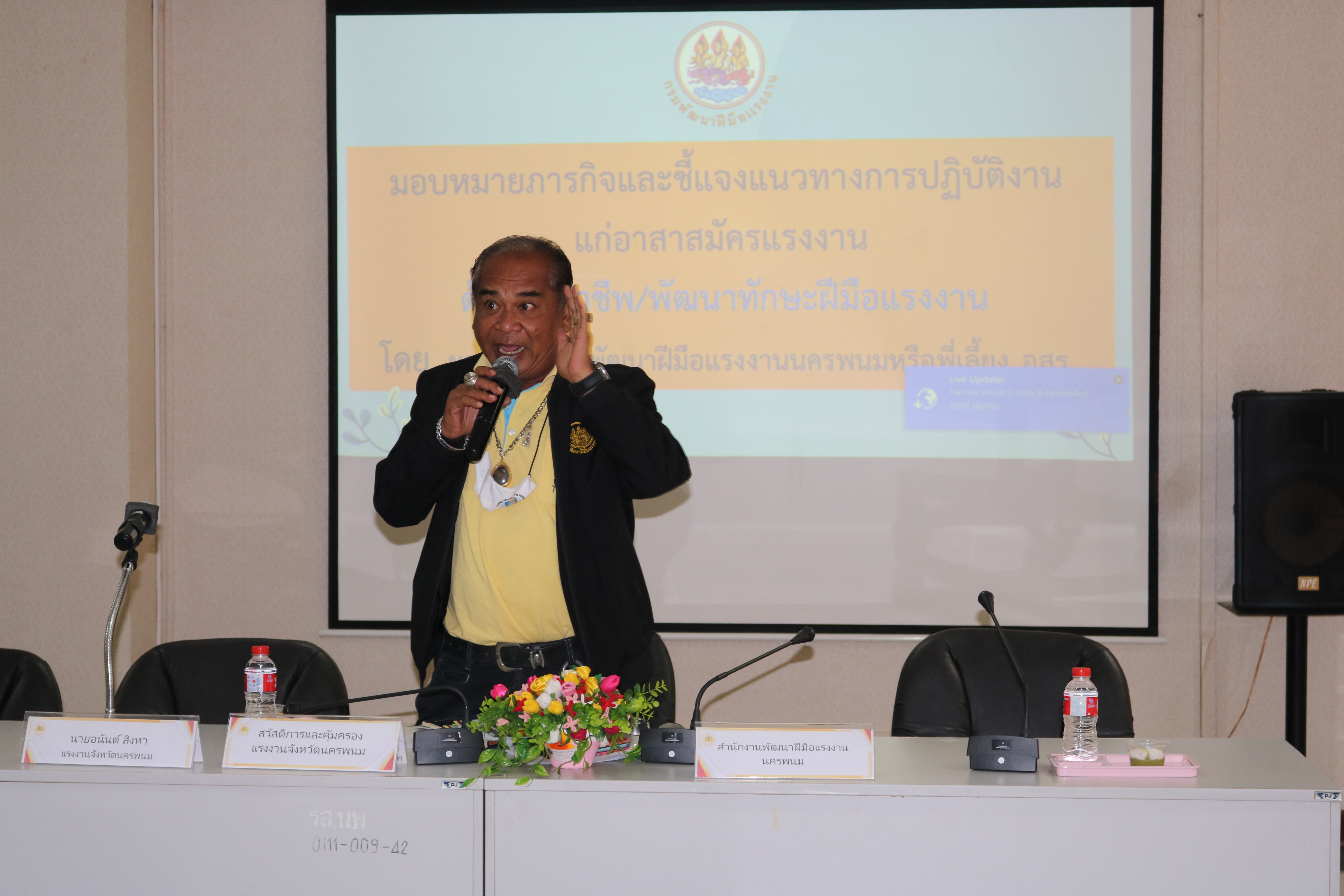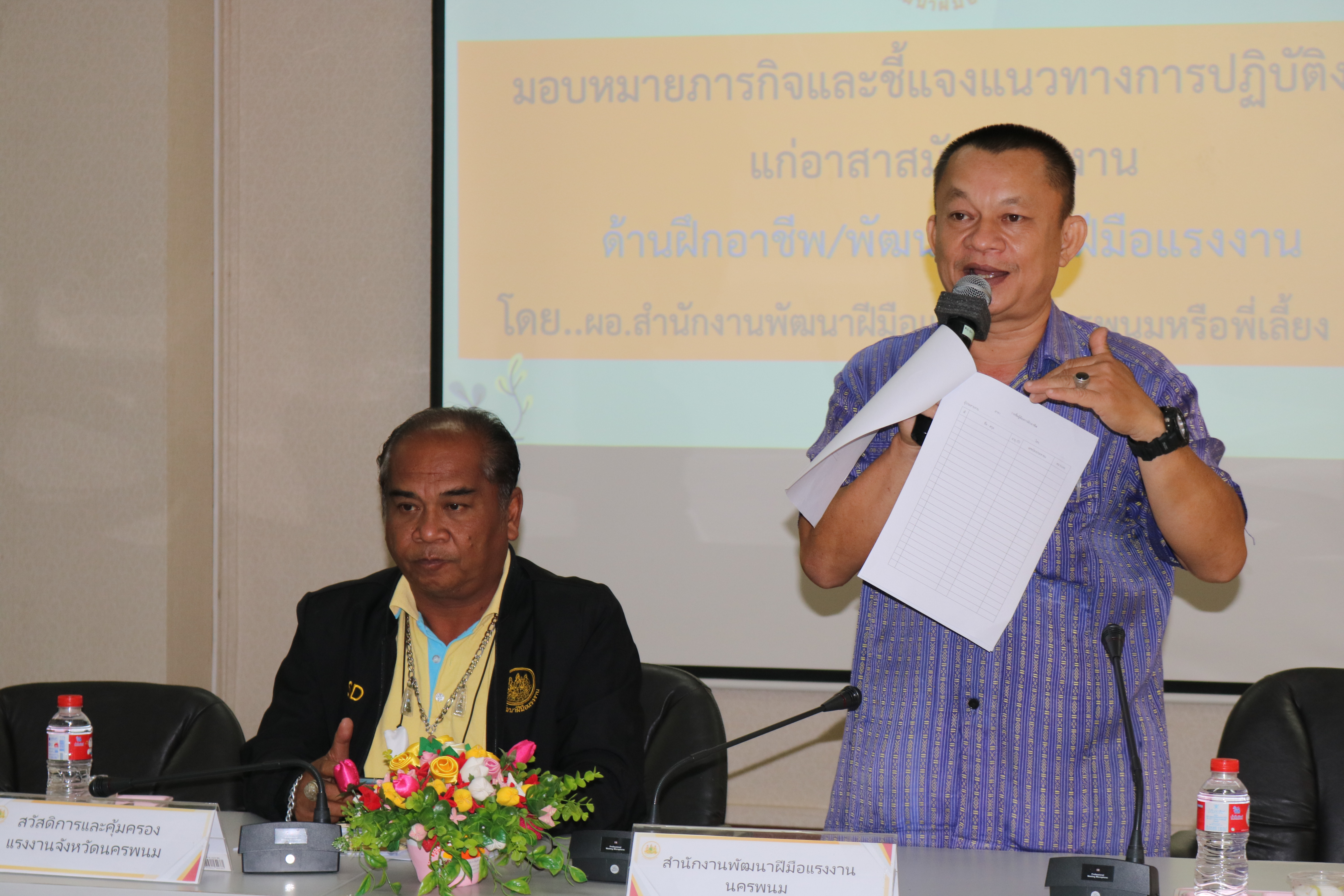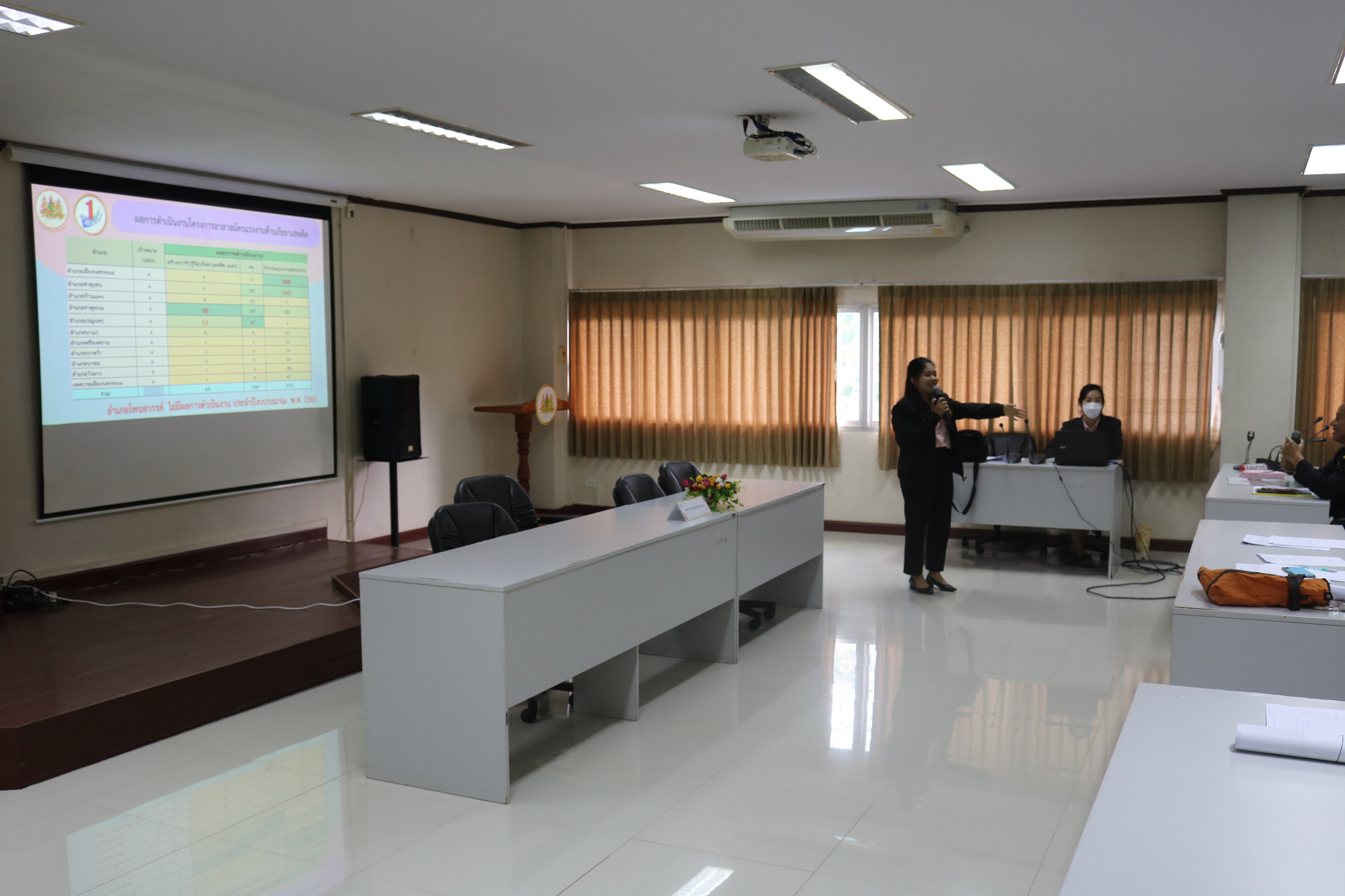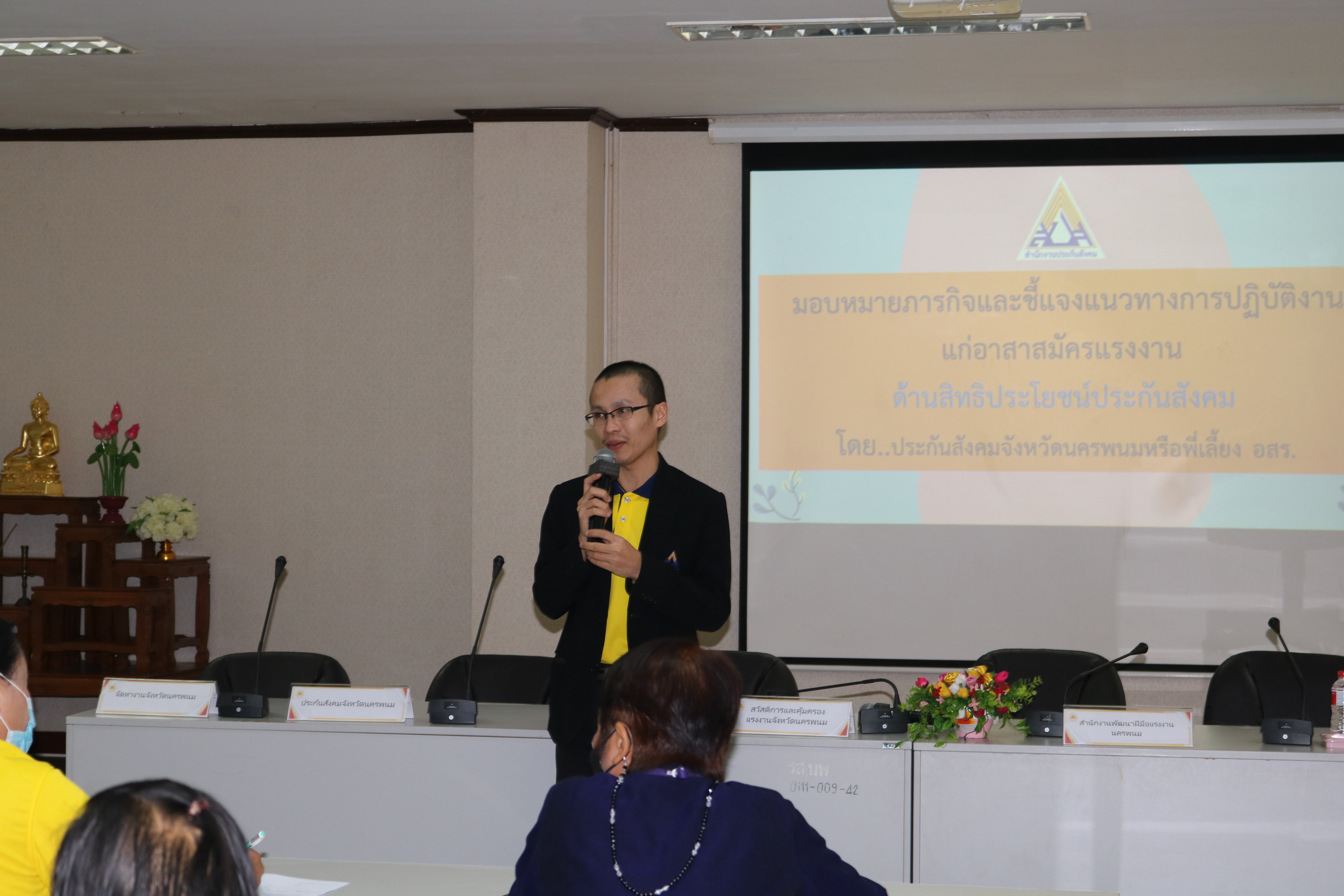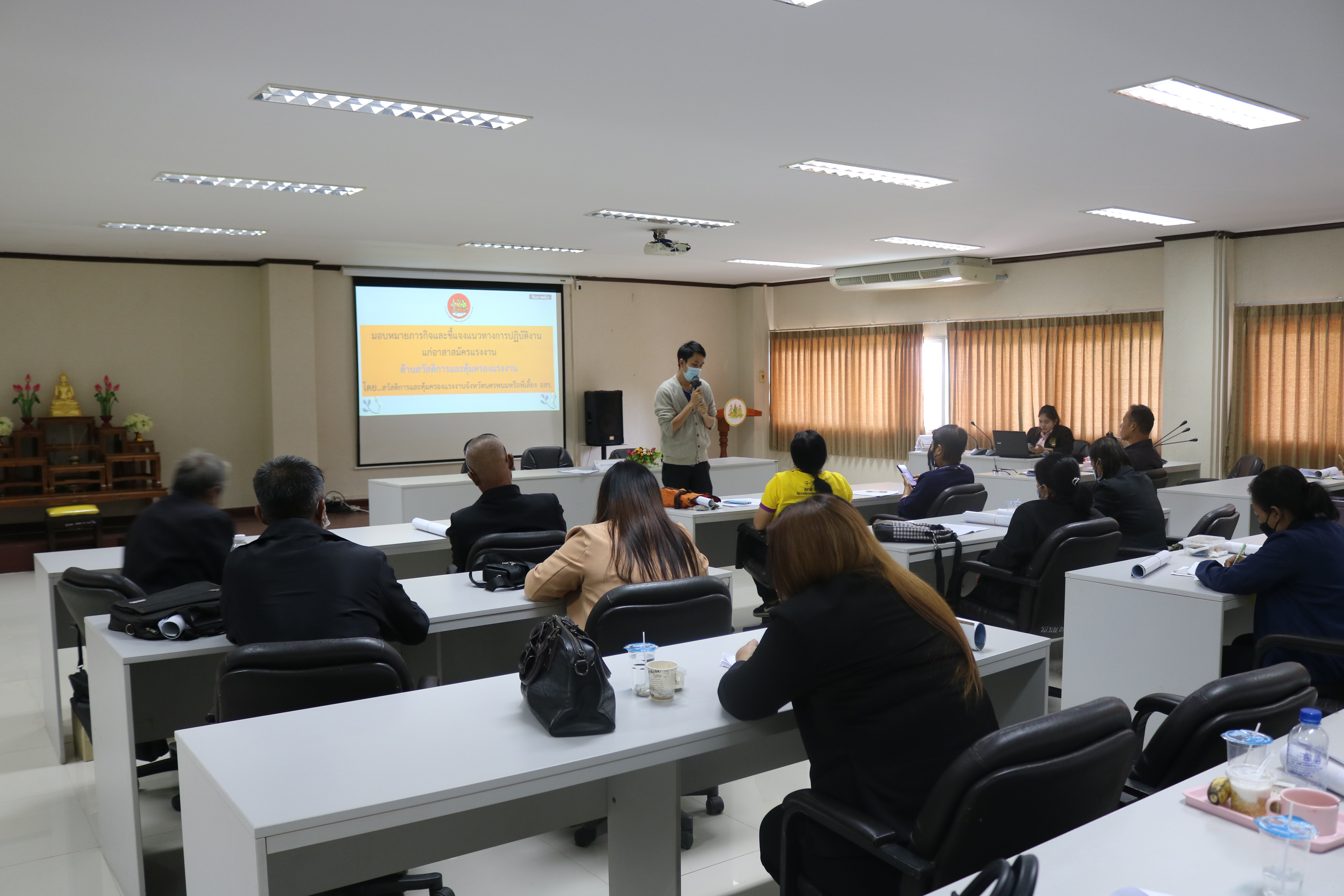 วันที่ 4 พฤศจิกายน 2565 เวลา 9:00 น. สำนักงานแรงงานจังหวัดนครพนม จัดประชุมมอบหมายภารกิจและชี้แจงแนวทางการปฏิบัติงานให้แก่อาสาสมัครประจำตำบล ประจำปีงบประมาณ พ.ศ. 2566 เพื่อรับมอบนโยบายและมอบหมายตามภารกิจ ทบทวนความรู้ ความเข้าใจในภารกิจของหน่วยงานในสังกัดกระทรวงแรงงาน และติดตามผลการปฏิบัติงาน ในเวลา 11:00 น. ได้ร่วมรับฟังบรรยายพิเศษเรื่อง “ความรู้เกี่ยวกับโรคมะเร็ง” จากนายแพทย์ธนุตม์ ก้วยเจริญพานิชก์ ผู้อำนวยการโรงพยาบาลมะเร็งชีวามิตรา ณ อาคารศูนย์ราชการกระทรวงแรงงานจังหวัดนครพนม ห้องประชุมนครพนม ชั้น 2