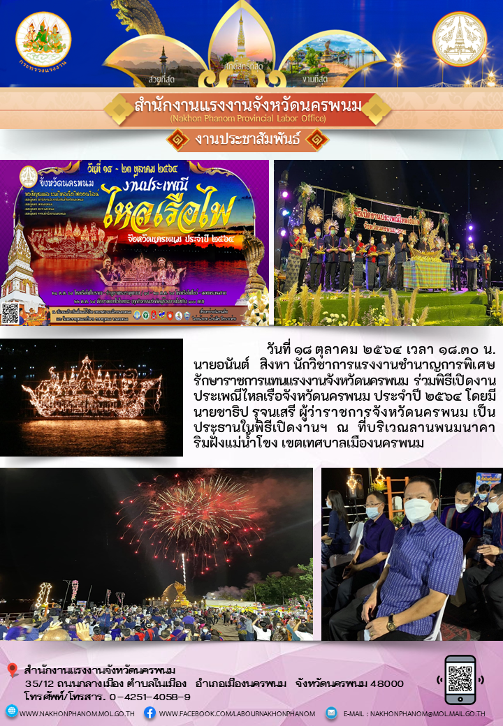สรจ.นครพนม เข้าร่วมพิธีเปิดงานประเพณีไหลเรือจังหวัดนครพนม ประจำปี 2564