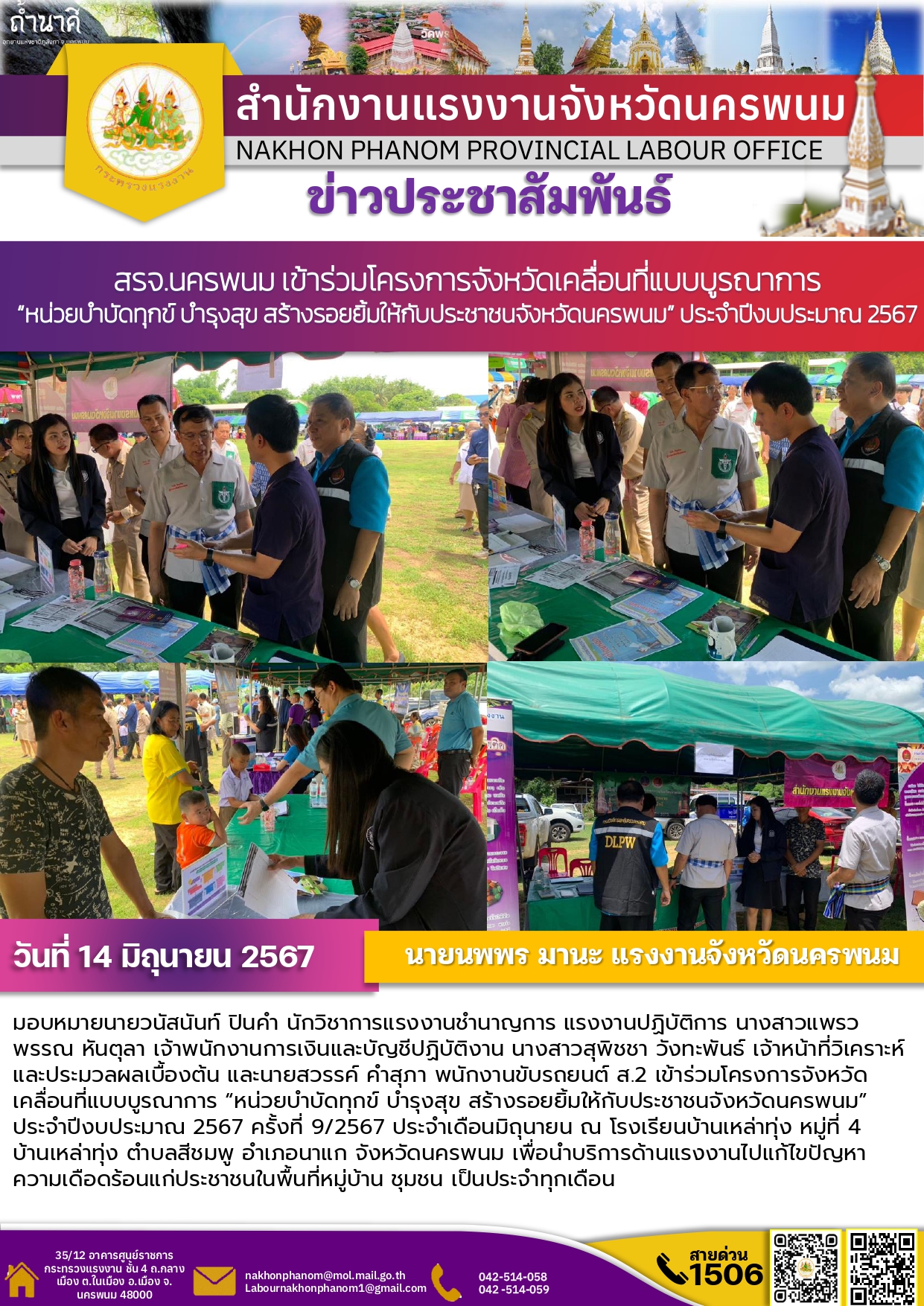 สรจ.นครพนม เข้าร่วมโครงการจังหวัดเคลื่อนที่แบบบูรณาการ “หน่วยบำบัดทุกข์ บำรุงสุข สร้างรอยยิ้มให้กับประชาชนจังหวัดนครพนม” ประจำปีงบประมาณ 2567
