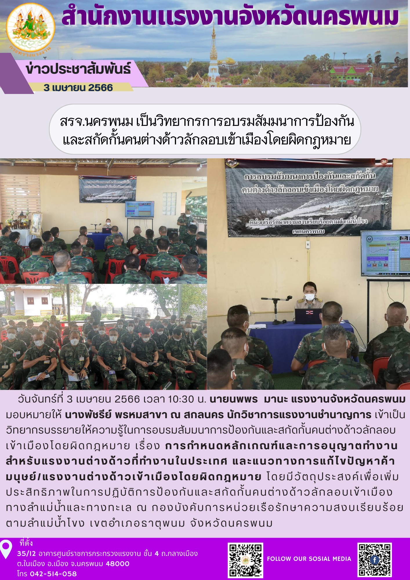 สรจ.นครพนม เป็นวิทยากรการอบรมสัมมนาการป้องกันและสกัดกั้นคนต่างด้าวลักลอบเข้าเมืองโดยผิดกฎหมาย