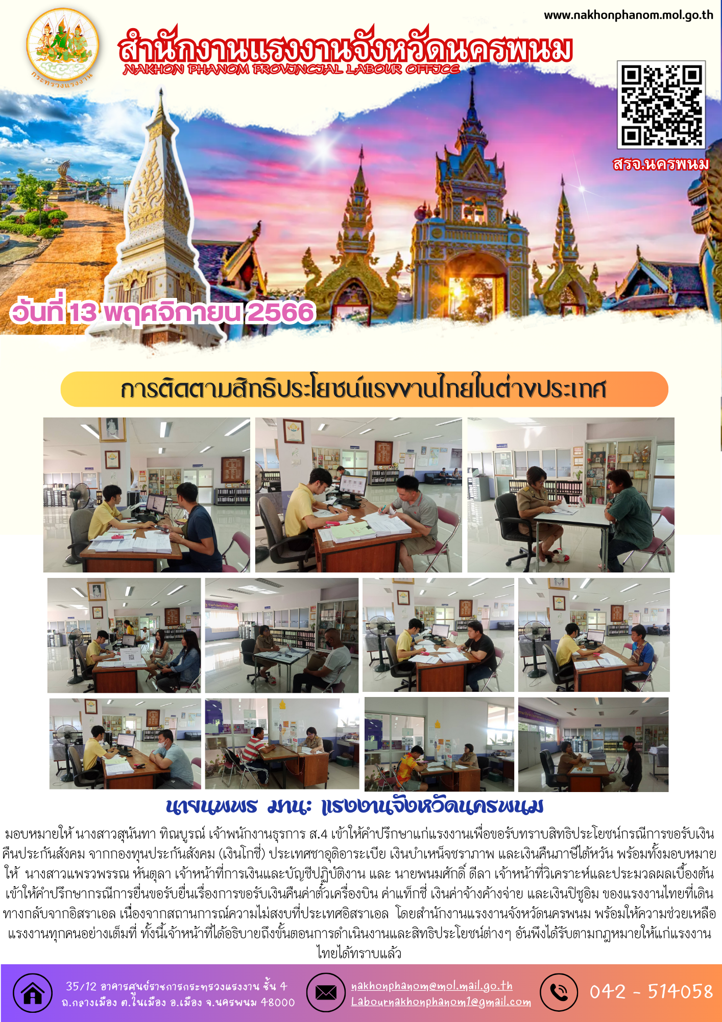 สรจ.นครพนม ให้บริการการติดตามสิทธิประโยชน์แรงงานไทยในต่างประเทศ