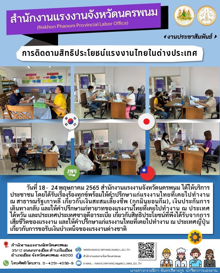 สรจ.นครพนม ให้บริการ “ติดตามสิทธิประโยชน์แรงงานในต่างประเทศ”