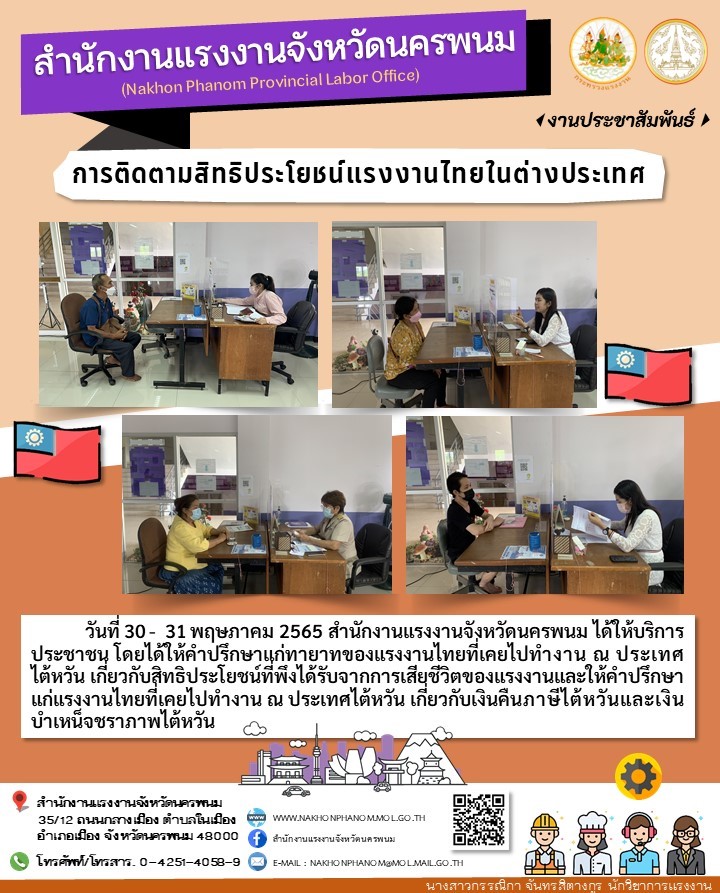 สรจ.นครพนม ให้บริการ “ติดตามสิทธิประโยชน์แรงงานในต่างประเทศ”