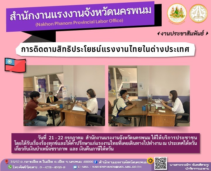 สรจ.นครพนม ให้บริการ “ติดตามสิทธิประโยชน์แรงงานในต่างประเทศ”